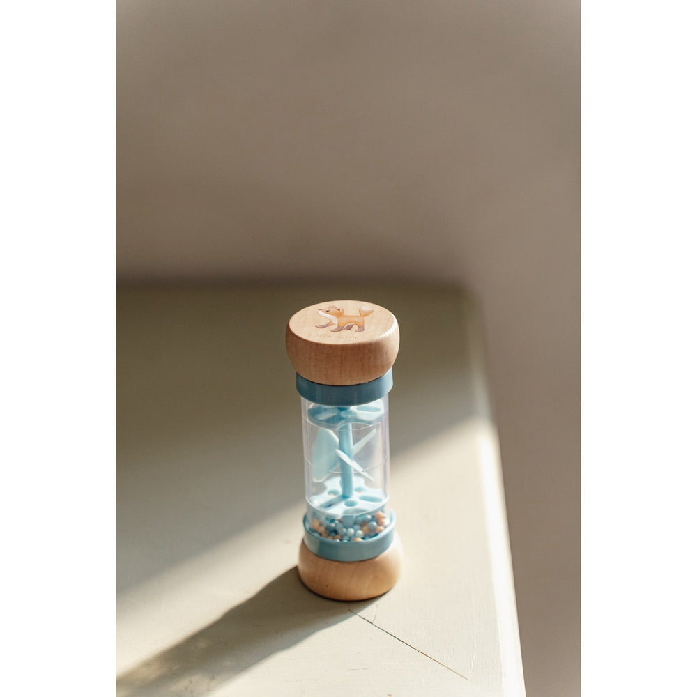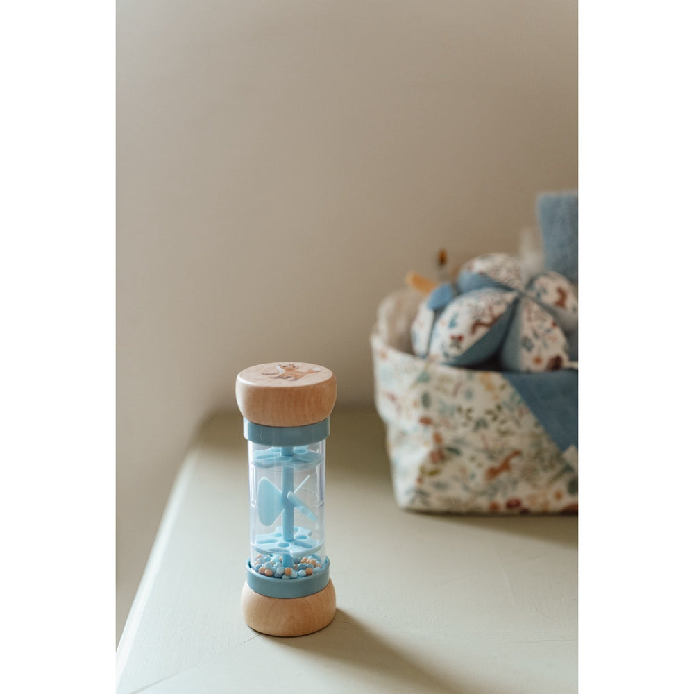 Discover the enchanting Little Dutch Forest Friends Blue Rainmaker, a delightful activity toy that combines fun with developmental benefits. Designed especially for the littlest of hands, this rainmaker encourages your baby's sensory development and nurtures their budding musical talents. As the colorful balls cascade through small openings, they spin a propeller, creating a calming, rain-like sound that captivates and calms.