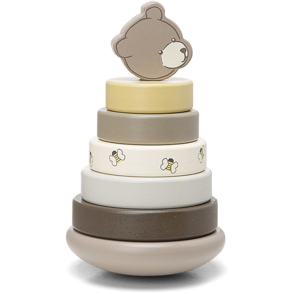 Introduce your little one to the enchanting world of play with the "That's Mine Bear Merle Stacker Tower." Crafted with the utmost care from beech wood and adorned with vibrant MDF circles, this wooden toy is not just a joy to look at but also built to last. Featuring five differently sized and colored stacking rings, it perfectly blends fun with educational elements.