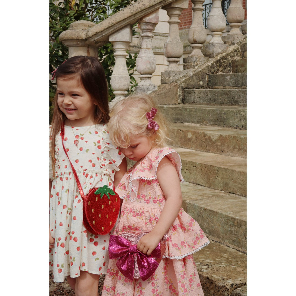 Discover the charming Konges Sløjd Barbados Cherry Tut Strawberry Shoulder Bag, perfect for your little one's adventures. This heart-shaped delight dazzles with its sparkling glitter design and slim, easy-to-carry shoulder strap. Crafted from durable materials, featuring 60% polyester and 40% polyethylene terephthalate with a 100% polyester lining, it promises both style and longevity. Ideal for children aged 3 and older, it's a whimsical yet practical accessory for storing treasures and trinkets on the go.