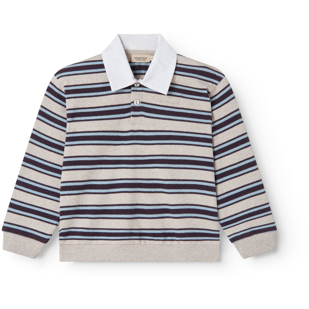 Discover comfort and style with the MarMar Modal Sweat College Stripe Thanos Polo Blouse, ideal for your little one's wardrobe. This soft, long-sleeved polo features a classic striped design with a convenient button closure at the neckline for easy dressing. Crafted from cozy material, it includes a collar and snug ribbing at the sleeves and waist, ensuring a perfect fit. Whether for school or play, this charming blouse blends functionality with charm, making it a versatile addition to any child's collection. Materials: 38% Modal 57% Cotton (Organic) 5% Elastane Washing instructions: Wash - Machine wash 30°C gentle, Bleach - Do not bleach , Drying - Tumble dry, low temperature, Ironing - low , Dry Clean - Do not dry clean Certifications: OEKOTEX, Organic Cotton, SA8000 Modal Sweat Logo embroidery Very soft and comfortable to wear Keeps shape and color Oeko-tex® - Tested for harmful chemicals