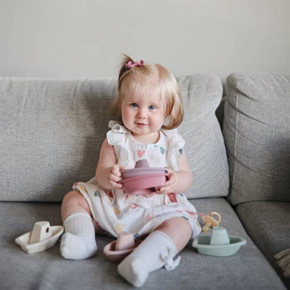 Not only are these boats safe and easy to handle for tiny hands, but they also prioritize your child's comfort and safety. Ensuring effortless maintenance, cleaning them requires nothing more than some warm, soapy water followed by air drying. Designed with versatility in mind, they offer both entertainment and stimulation, aiding in your child's developmental growth through play. Whether neatly stacked or floating merrily, the Mushie Petal Bath Boats guarantee endless hours of joyful play while also helping to keep play areas tidy and organized.