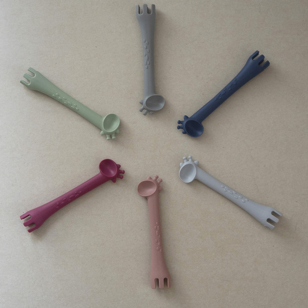 Discover the perfect starter spoon for your little one with our Tiny Tot Grey Beginner Silicone Cutlery. This innovative smart silicone spoon features a 2-in-1 function, integrating a grip part to help your baby learn to use a fork and spoon effortlessly. Crafted from 100% LFGB food-grade silicone, it’s designed to be gentle on your baby's teeth and gums, while also being skin-friendly to avoid any irritation.