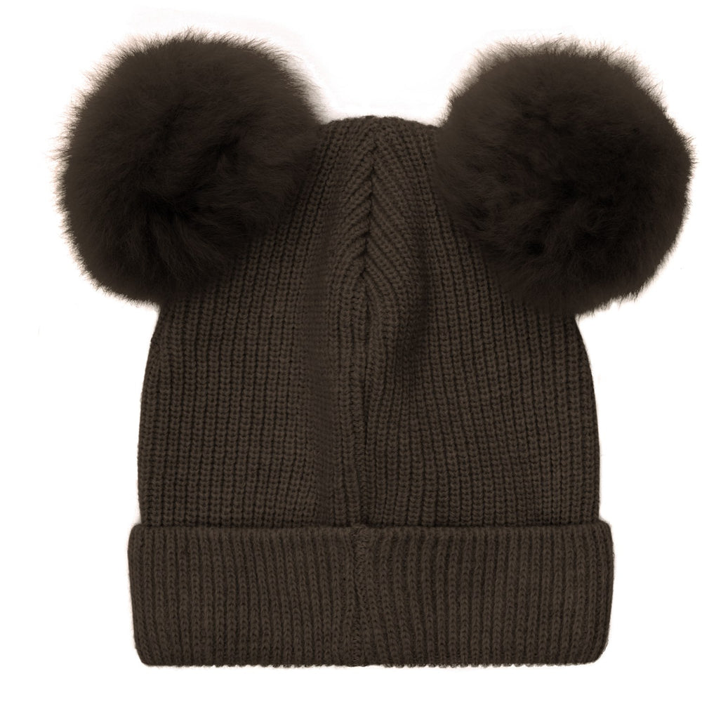 Huttelihut Dark Brown Melange Hat Knit Alpaca Pompoms