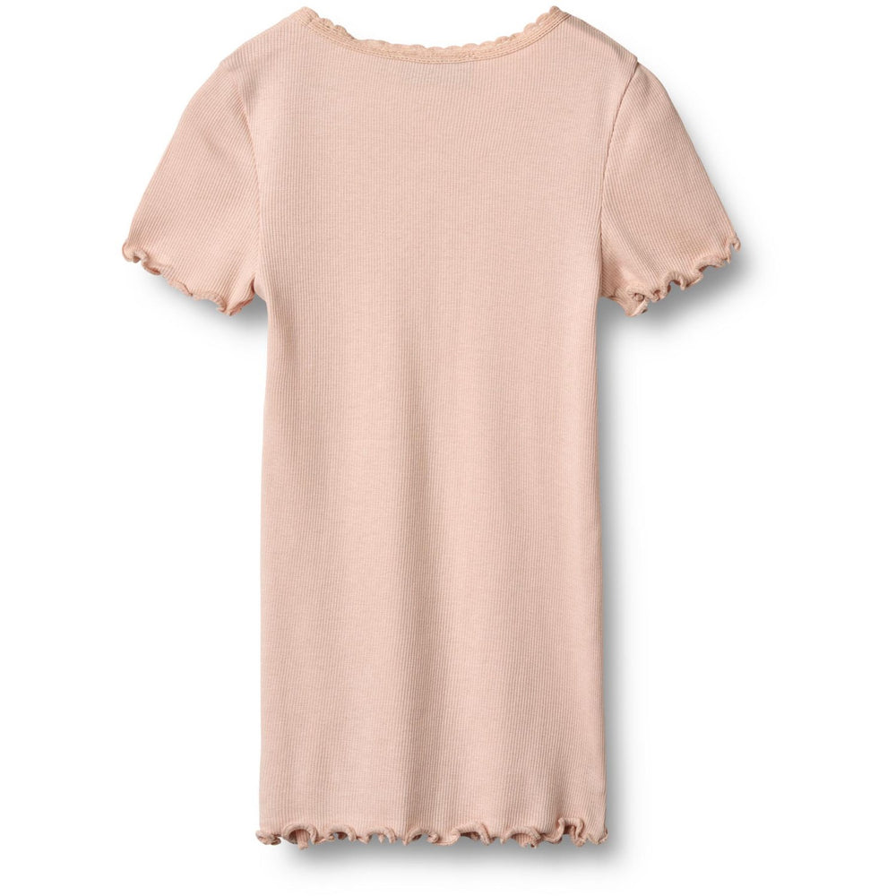 Discover the charm and comfort of Wheat's Powder Rib T-Shirt S/S Katie, tailored for the playful and sensitive skin of children. It’s crafted from a sustainable blend of 48% organic cotton and 48% Lenzing modal, with 4% elastane for that extra stretch, ensuring a snug and comfortable fit. The shirt features a sophisticated ribbed structure, complemented by delicate lace detailing at the neckline and neatly overlocked edges on the sleeves and bottom hem, blending durability with style. This short-sleeved T-shirt excels in wearability and care, meeting the rigorous Standard 100 by OEKO-TEX® criteria—it’s safe and easy to maintain. Available in a wheat color, this piece easily integrates into any child’s wardrobe, ideal for layering under dresses or pairing with jeans or skirts. Whether it’s for a casual outing or extra warmth on cooler days, this T-shirt remains perfectly fitted and endlessly stylish, making it an indispensable garment for any season.