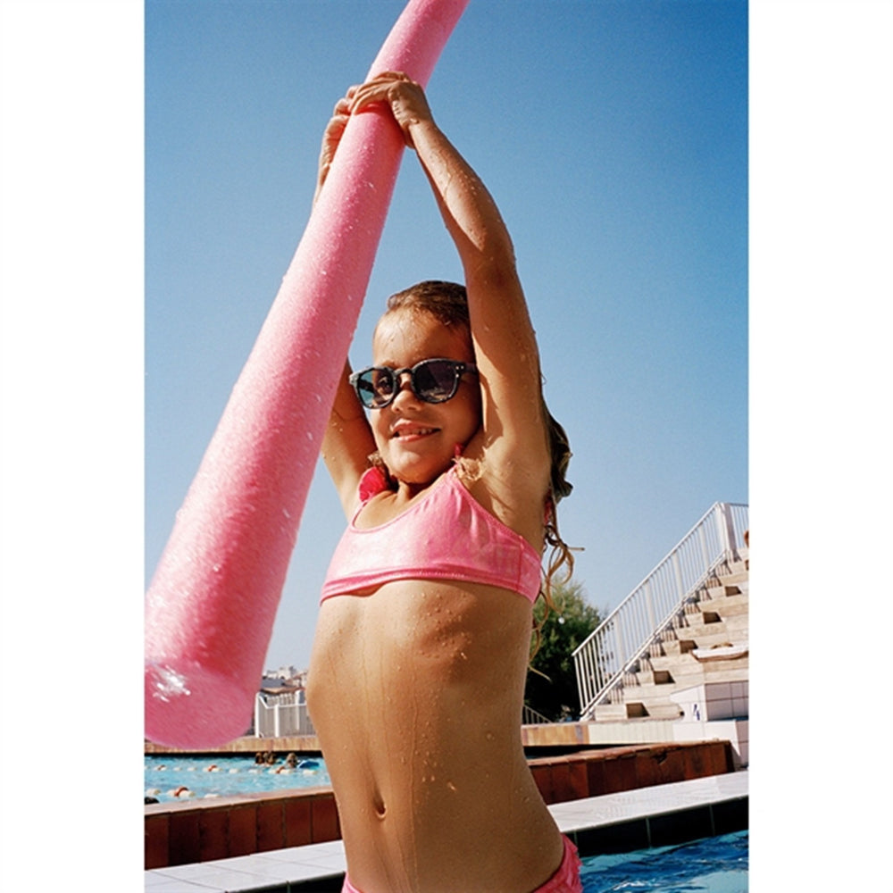 Super stylish sunglasses for both boys and girls. These in a nice black with dark glasses. The sunglasses are both comfortable and smart on sunny days. A fine felt eyeglass protector is included. From 5-10 years old (depends on the size of the child's head). However, we estimate that they are small in size.