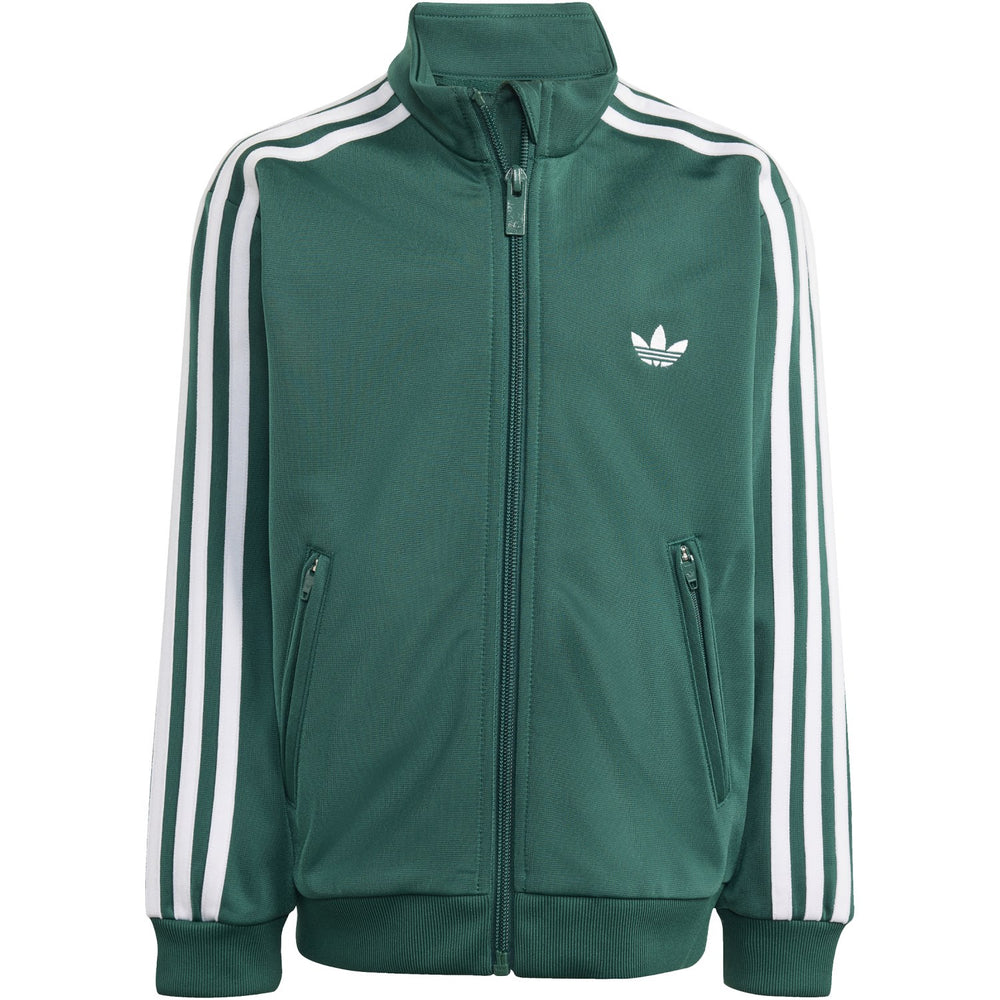 Dress your little one in a classic with the adidas Originals Firebird Tracksuit in Collegiate Green and White. This iconic set, part of the Adicolor - Classic Sport collection, fuses adidas's rich history with contemporary style, making it an ideal outfit for kids on the go. Made from cozy tricot fabric, it offers superior comfort and durability for all-day wear, from classroom to playground.