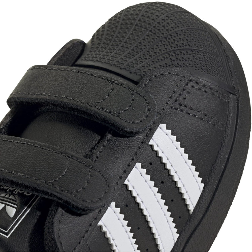 Step up your child’s style with the adidas Originals Superstar II CF I Sneakers, perfect for tiny trendsetters. Crafted with a sleek leather upper and a classic shell toe, these sneakers blend iconic design with toddler-friendly features like hook-and-loop straps for effortless on and off. Comfort is key with a padded tongue and moulded sockliner, ensuring little feet are snug and supported during play. In a versatile core black with crisp white accents, these shoes promise durability and style, making them a go-to for your little one's adventures. With easy-care instructions and the trusted adidas brand, these sneakers are as functional as they are fashionable.
