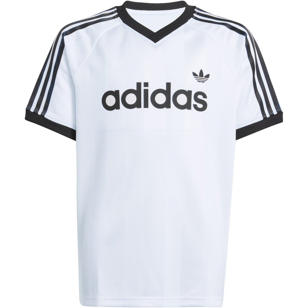 Discover the charm of the adidas Originals White Lo T-shirts, a celebration of timeless style and comfort. Made from plush doubleknit fabric, this Loose Jersey Tee ensures a gentle feel against the skin, perfect for your child's sensitive complexion. Featuring a ribbed V-neck and a relaxed fit, it combines freedom of movement with a fashionable flair. The iconic printed linear logo and the classic 3-Stripes on the sleeves infuse it with adidas' rich heritage, making it a stylish yet functional choice for any young wardrobe. Easy to care for and delightful to wear, this t-shirt pairs seamlessly with both jeans and joggers, ready to accompany your little one on every adventure from playground fun to family gatherings, all while showcasing their adidas pride. Fit: Loose Materials: 100% Recycled polyester Washing instructions: Remember to follow washing and user instructions Extra: Printed Linear logo, V-neck
