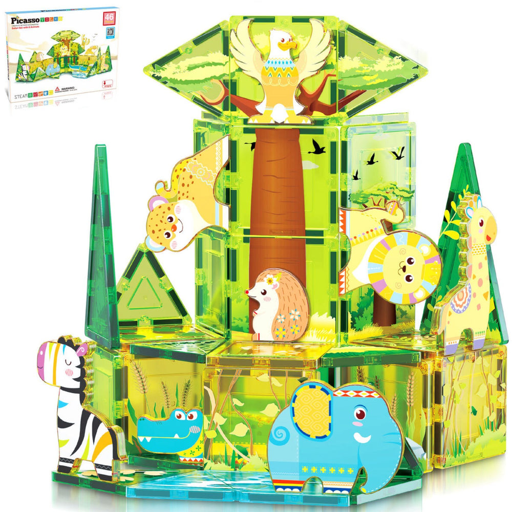 Picasso Tiles Picasso Tiles 46 Stk Magnetiske Byggesæt Safari
