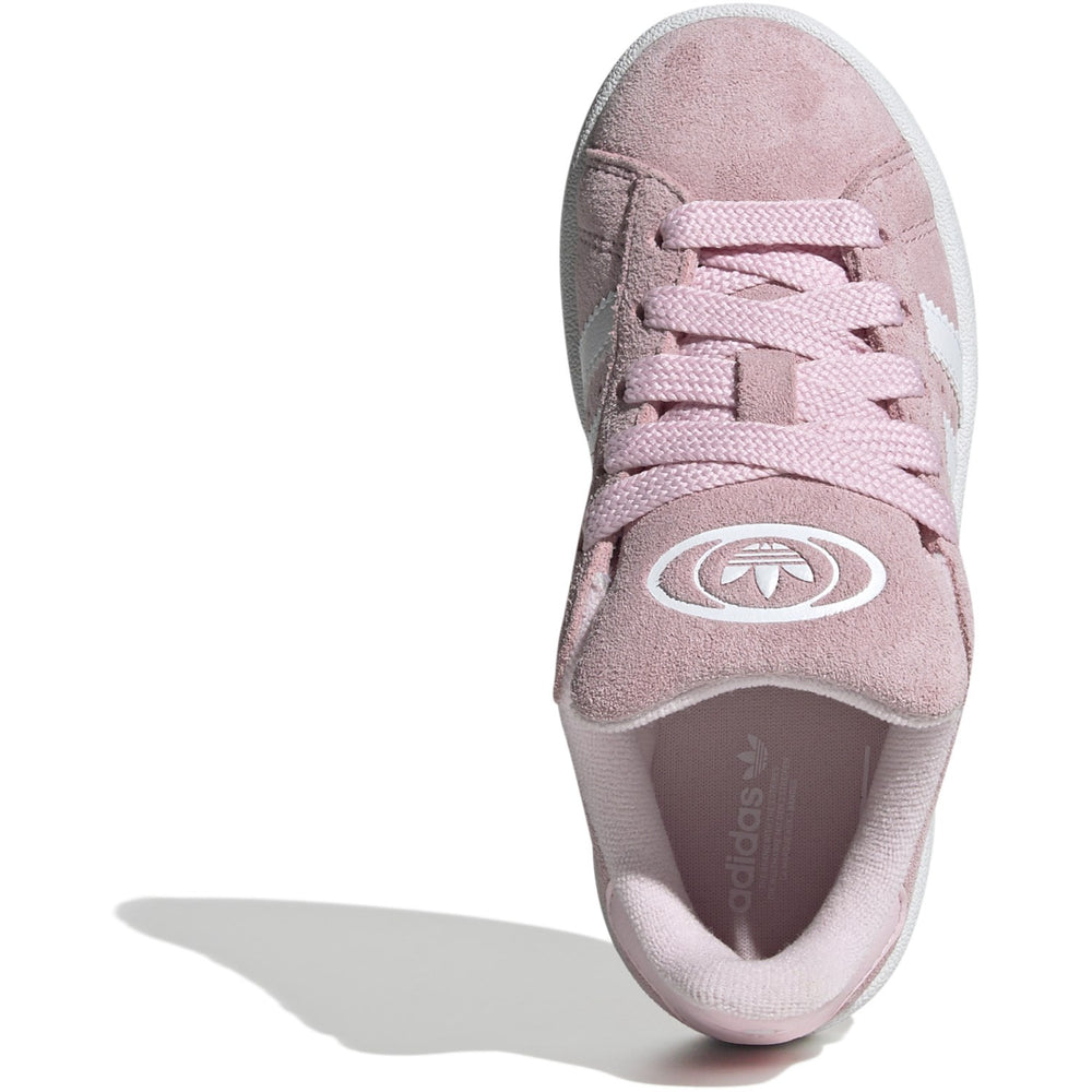 Introduce your child to sporty elegance with adidas Originals Campus 00S C Sneakers, perfectly tailored for active little ones. Crafted with a plush suede upper in a dreamy Clear Pink/Ftwr White/Gum 2 color palette, these sneakers blend classic charm with modern functionality. The comfortable fit and durable gum rubber outsole ensure secure movement, making these shoes ideal for school days or weekend adventures. Embrace effortless style and unmatched comfort with these iconic shoes, designed to keep pace with your child's playful lifestyle.