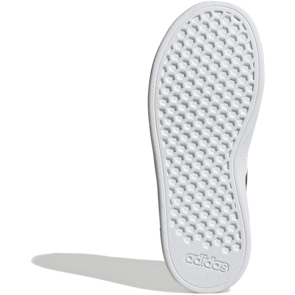 Step into style and sustainability with the adidas Originals Grand Court 2.0 K Sneakers! Perfect for kids on the move, these sneakers feature a comfortable synthetic leather upper with a playful animal-print design on the iconic 3-Stripes and heel tab. The adjustable strap ensures a custom fit, making them easy for little hands to manage. Crafted in a serene Ftwr White/Magic Beige/Matte Gold color scheme, these shoes not only look fabulous but also champion eco-friendly practices with at least 20% recycled materials. The grippy sole provides excellent traction for all playground escapades. Dive into everyday adventures with these durable, stylish, and conscious kicks, designed to keep young feet cozy and supported throughout the day.