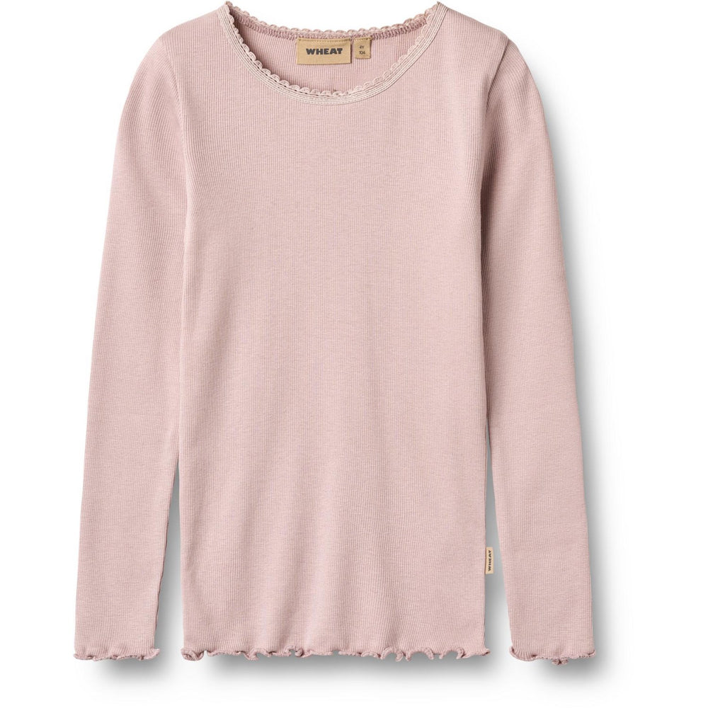 Discover the charm of comfort with Wheat's Soft Lilac Rib Blouse Reese, a perfect addition to your child's clothing collection. Crafted from a luxurious blend of 48% organic cotton and 48% Lenzing Modal, with a touch of 4% elastane for that necessary stretch, this long-sleeved rib T-shirt guarantees both eco-friendliness and superior comfort. The delicate lace detailing at the neckline and the snug fit enhance its stylish allure, while the ribbed structure and resilient overlocked edges at the cuffs and hem ensure durability and a polished look. Certified by Standard 100 by OEKO-TEX®, it promises safety and high-quality materials. Thanks to its versatile design, this blouse pairs wonderfully with both trousers and skirts or can be layered under dresses and overalls for added warmth. Ideal for everyday wear and special occasions alike, it offers endless styling possibilities while keeping your child cozy and stylish.