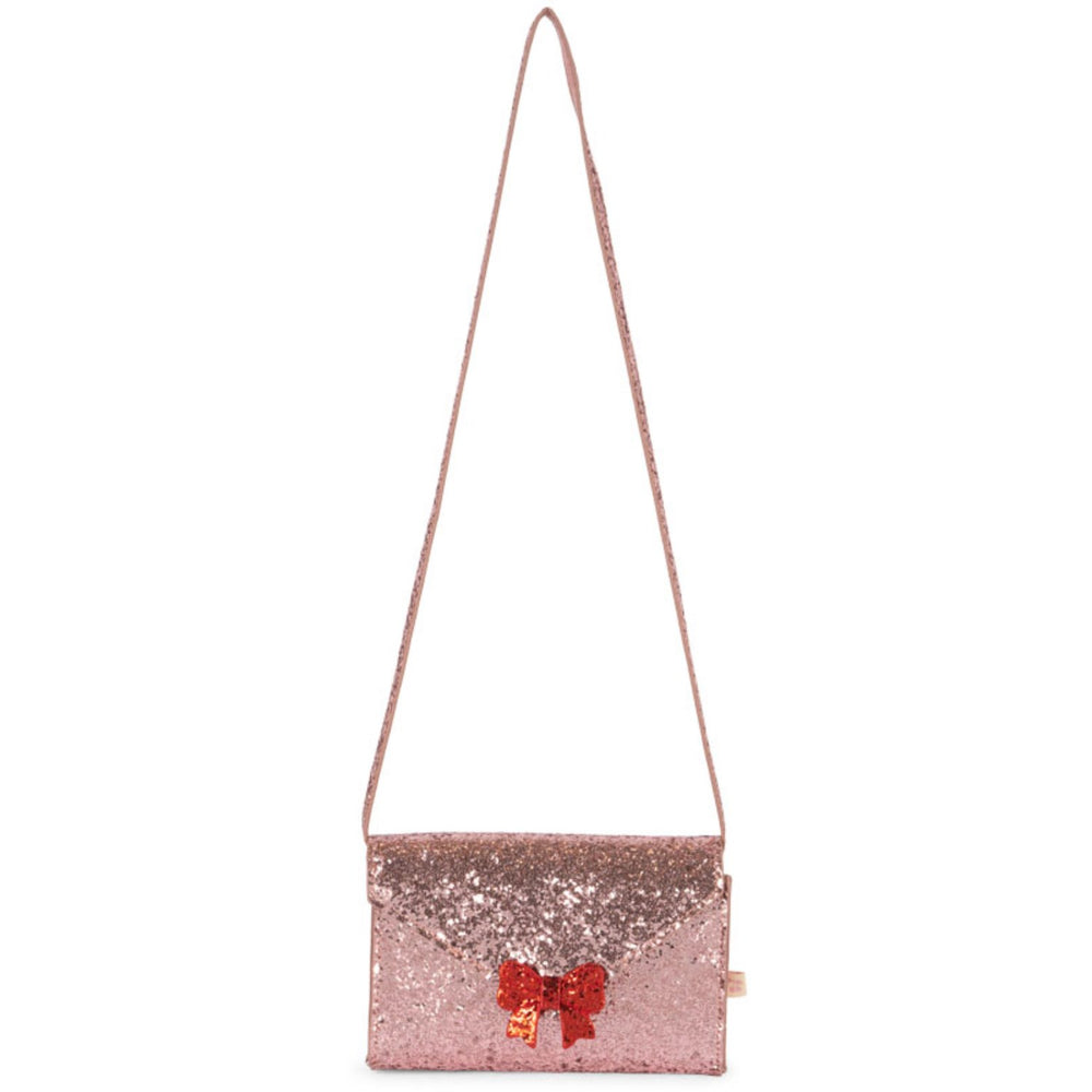 Brighten up your little one's wardrobe with the dazzling Konges Sløjd Mellow Rose Love Letter Bag. This charming crossbody shoulder bag, designed like an envelope and adorned with eye-catching glitter, features the signature touch of Konges Sløjd. Comprised of a durable blend of 60% polyester and 40% polyethylene terephthalate, with a 100% polyester lining, it promises both style and comfort for your child. Ideal for kids aged 3 and up, the bag measures 11.5 x 16 x 4.5 cm, offering ample space for their treasures while ensuring ease of use and maintenance. Perfect for adventurous outings or stylish school days, this bag adds a sparkle of fun and functionality.