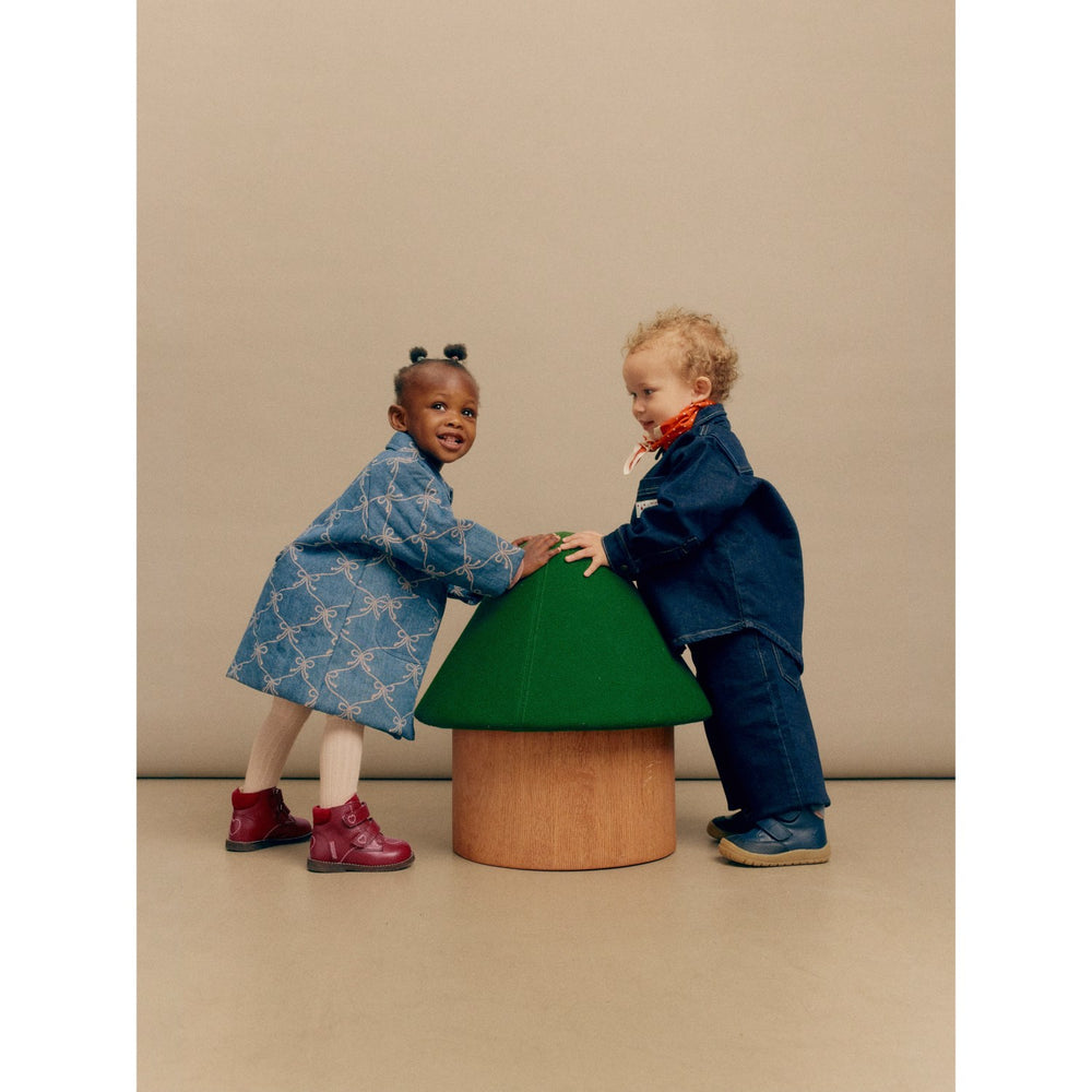 Explore the delightful Angulus Berry/Berry Beginner TEX Boot with Heart Embroidery, the perfect choice to keep your child’s adventures warm and comfy. These winter boots boast natural, breathable leather with a PFAS-free TEX membrane, ensuring dry and snug little feet. The charming heart embroidery adds a fun touch while the soft merino wool lining cradles their feet in warmth. Adjustability is key; hence these boots feature adjustable velcro straps for a snug, personal fit and a padded insole for added comfort. The design includes a fixed heel counter with a padded suede collar to promote stability, support, and comfort. Moreover, each step is cushioned by a light, flexible dark brown FSC-certified rubber sole, designed with arch support in mind to aid your child's growing feet. Available in various sizes, these boots are designed in Denmark and lovingly handmade in Portugal. They are not only stylish with their decorative stitching rim but also practical for any weather condition. To ensure the best fit, measure your child’s foot and opt for a growth allowance of about 1-1.2 cm. The Angulus Berry Beginner Boots are the ideal blend of style, functionality, and comfort, promising joyful and carefree play for your child.