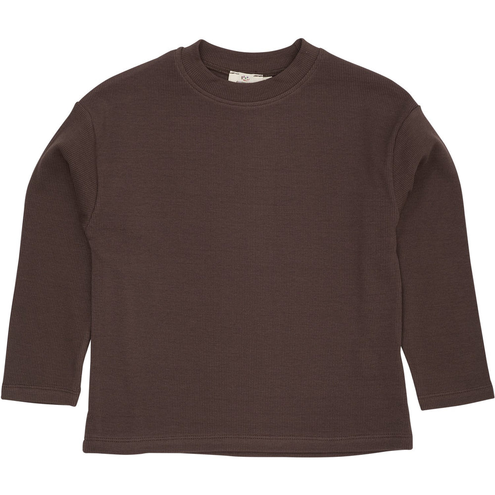 COPENHAGEN COLORS Dk Brown Modal Rib Ls Blouse W. Drop Shoulder