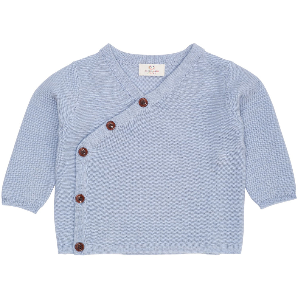 COPENHAGEN COLORS Dusty Blue Merino Baby Cross-Over Cardigan In Garter Stitch