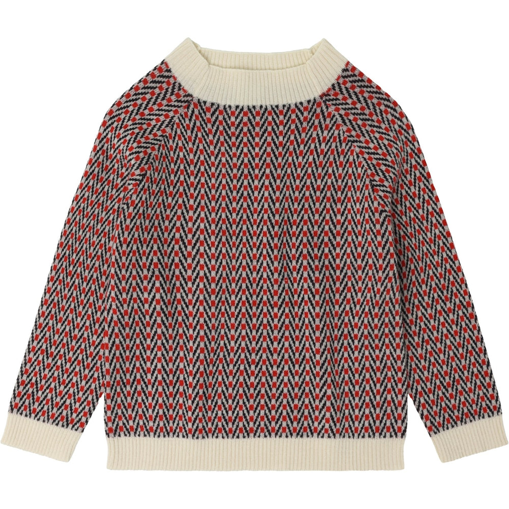 Introducing the FUB Ecru Herringbone Sweater for children, crafted from 100% OEKOTEX®, RWS, and BLUESIGN® certified merino wool to ensure your child's comfort without compromising on environmental standards. This elegant sweater showcases a distinctive herringbone pattern, complemented by a timeless ecru color that adds a touch of sophistication to any child’s wardrobe. Featuring raglan sleeves for easy mobility, and a comfortable regular fit with a high round neckline and ribbed hems, your child is guaranteed warmth and style in one package. The merino wool is not only soft and gentle on the skin but also free from harmful chemicals and sourced from non-mulesed sheep. Its unique treatment allows for machine washability, making it as practical as it is stylish. Perfect for cooler days, it promises to keep your little one cozy while looking effortlessly chic.