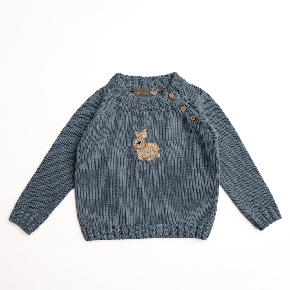 Dress your little one in the charming Hanevild Stormy Weather Linus Blouse, a beautifully knitted jumper that features a delightful rabbit embroidery on the chest. Crafted from durable, high-quality organic cotton, this top ensures comfort and sustainability. The soft 100% organic cotton fabric is gentle on your child's skin, making it ideal for everyday wear. Available in versatile colors and patterns, the Linus Blouse combines style with practicality—it's machine washable at 30 degrees and should be laid flat to dry, maintaining its shape and quality without the hassle of bleaching or tumble drying. Perfect for playful days and cozy moments, this blouse offers both adorable style and dependable comfort for your child.