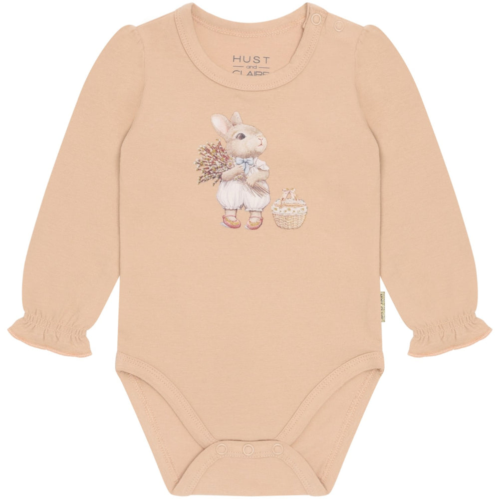 Explore the vibrant world of children's fashion with the Hust & Claire Rugby Tan Britt Sweet Bunny bodysuit! This charming piece is crafted from exceptionally soft materials, ensuring comfort for your little one's delicate skin. It features a delightful bunny pattern on a warm tan background, adding a touch of whimsy to your child's wardrobe. Tailored for a perfect fit, this bodysuit offers both ease of movement and durability. Ideal for everyday wear, it's also machine washable for hassle-free care. Let your child enjoy both style and comfort with this adorable addition to their clothing collection.