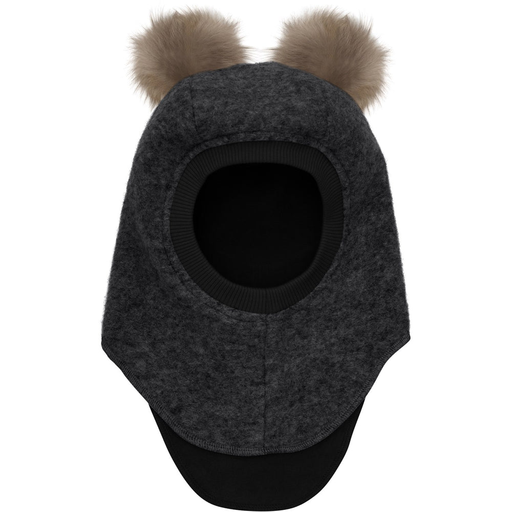 Huttelihut Dark Grey Melange Balaclava Wool Alpaca Pompoms
