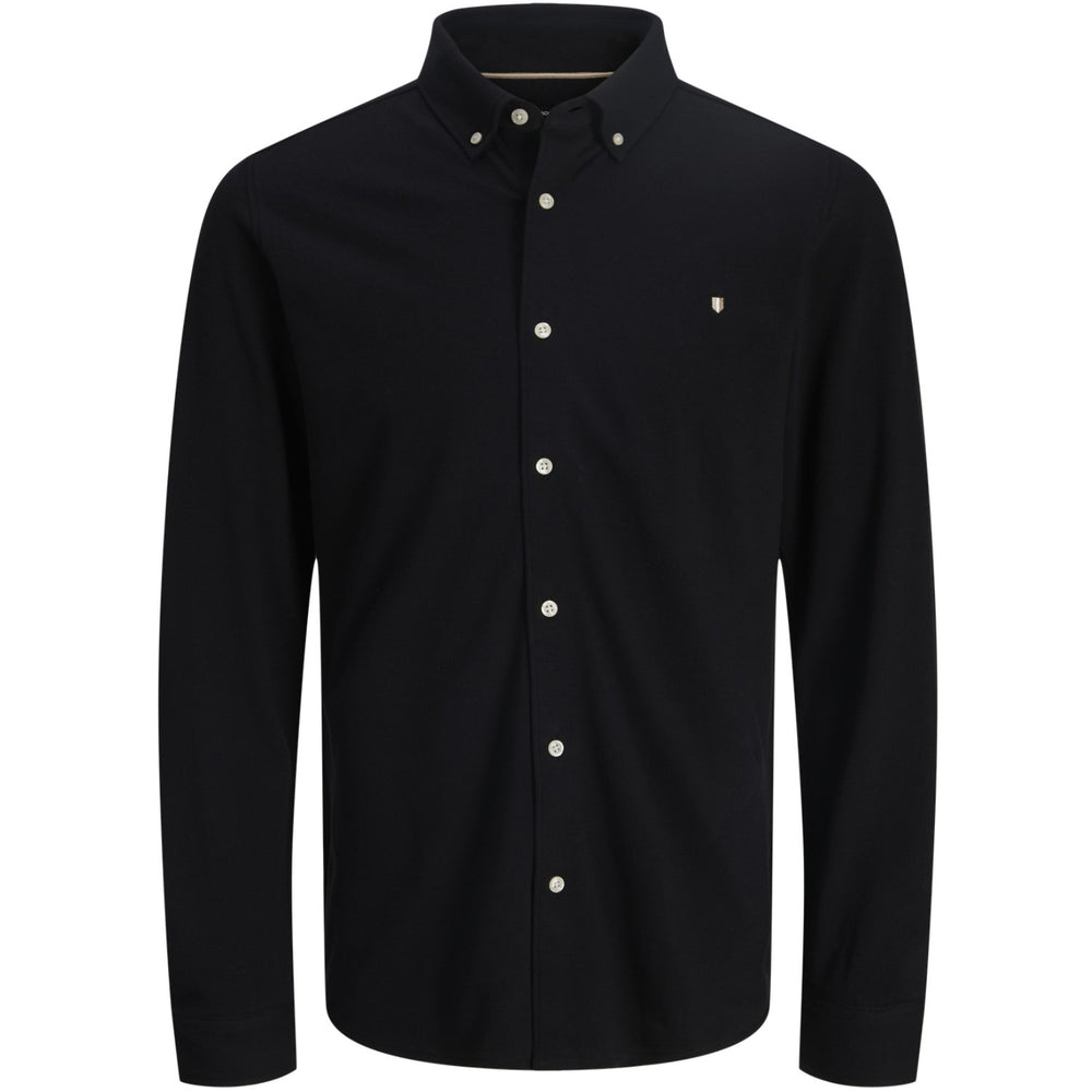 Jack & Jones Junior Black Jprblublake Pique Detail L/S Shirt Jnr