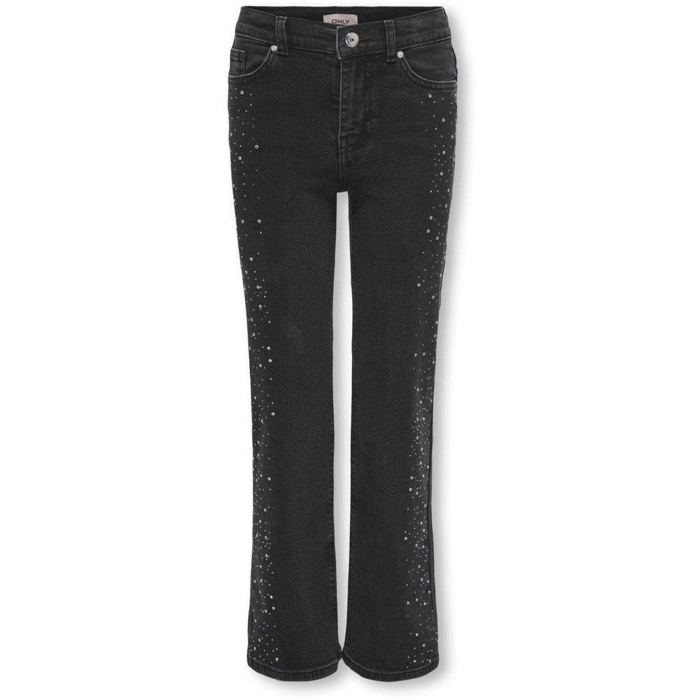 Discover the perfect blend of style and comfort with our kids ONLY Washed Black Rhinestones Kogjuicy Hw Rhinestone Wide Leg Denim Jeans. Crafted from durable material, these jeans feature a dazzling design accented with rhinestones for a trendy look. The wide-leg fit and high waist ensure ample comfort and freedom of movement, making them ideal for active kids.