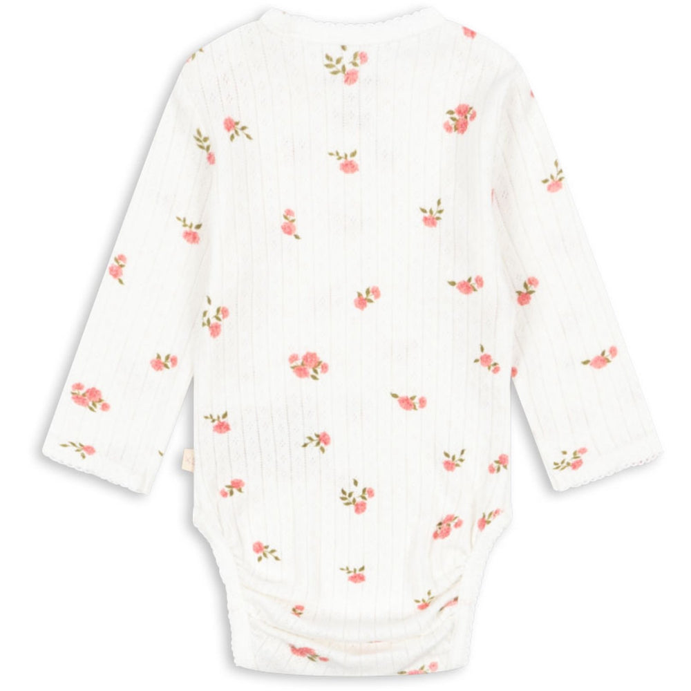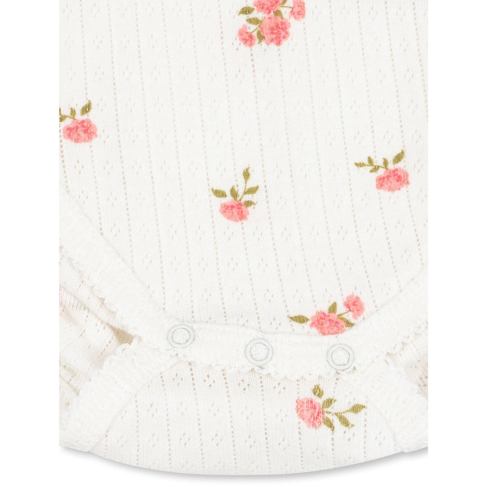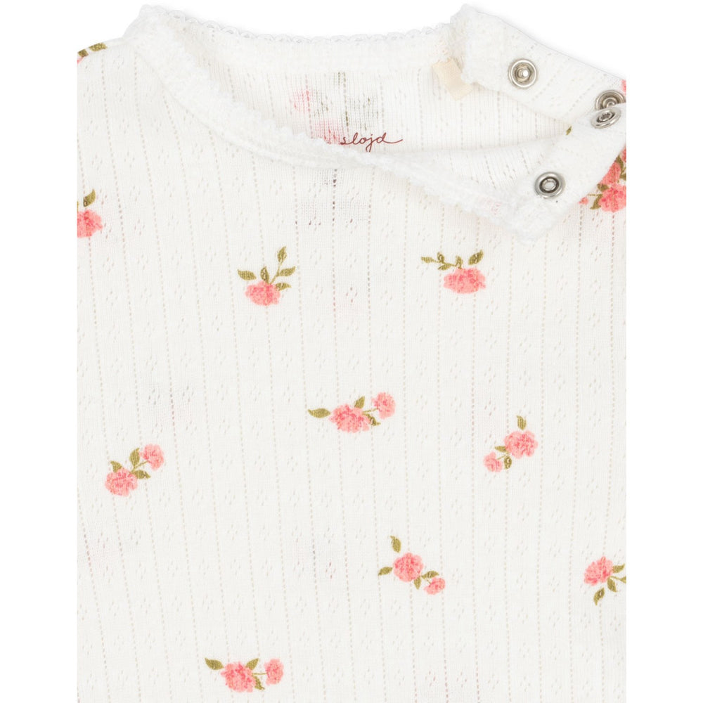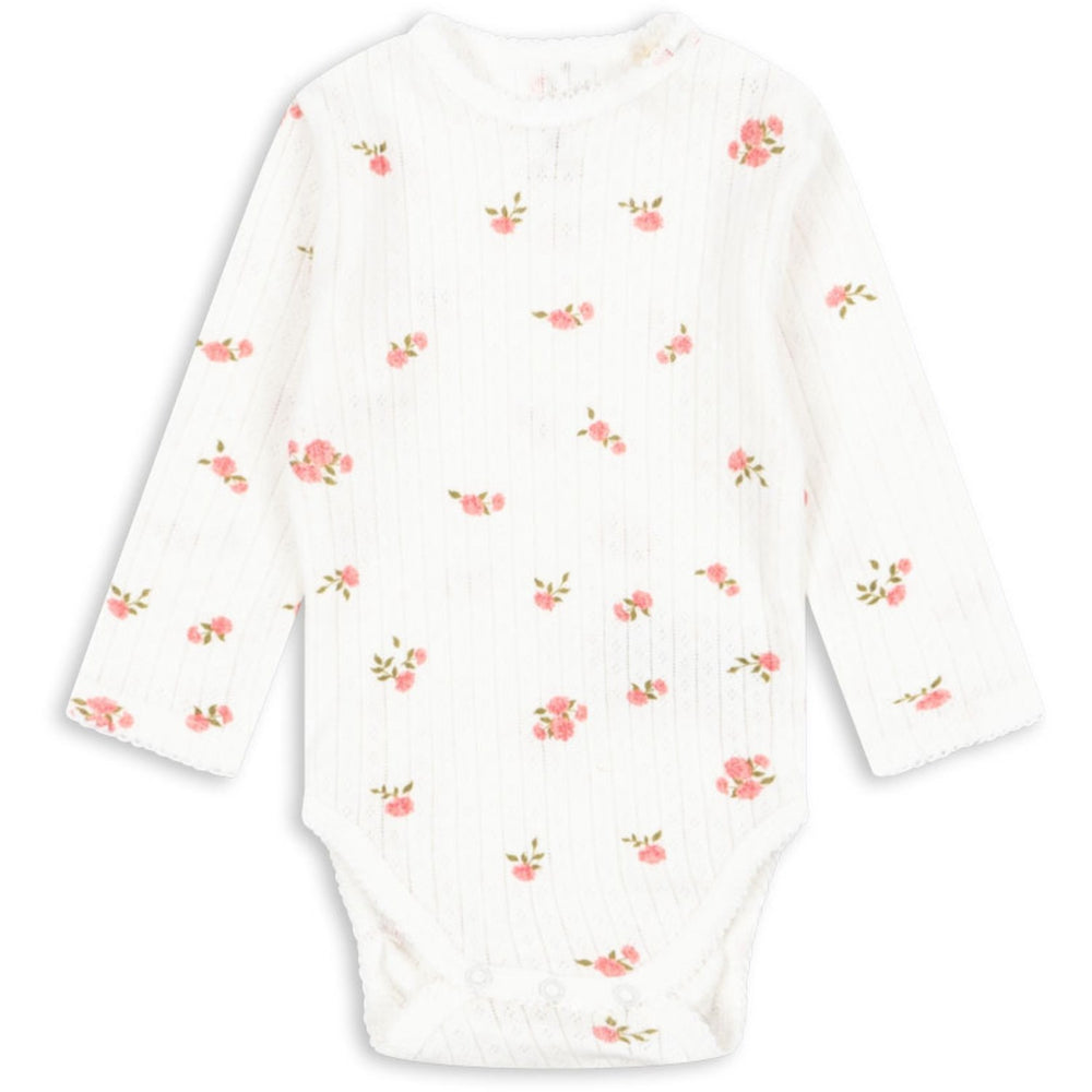 Dress your little one in the comfort of the Konges Sløjd Bonderose Big Minnie Body Gots, meticulously crafted from soft organic cotton. Featuring charming pointelle details and practical snap buttons at the leg openings, this bodysuit combines effortless style with easy dressing. Ideal for daily wear, its gentle fabric is kind on delicate skin, making it a perfect addition to your child's wardrobe.