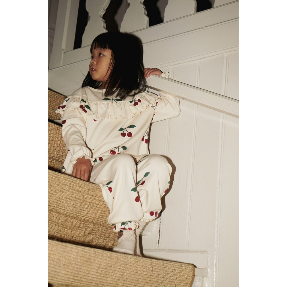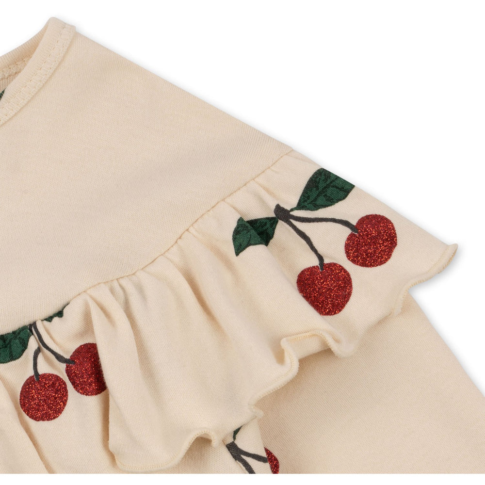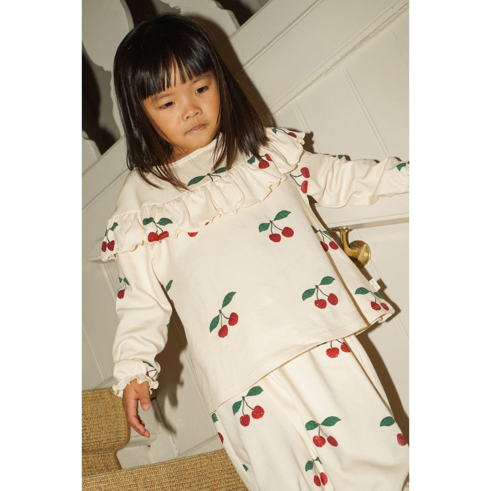 Discover the enchanting charm of the Konges Sløjd Ma Grande Cerise Glitter Malli Blouse for your little one. Crafted with 100% GOTS-certified organic cotton, this blouse dazzles with subtle glitter details and delightful frills on the cuffs and chest. Its soft fabric ensures comfort, while the organic certification promises environmentally friendly wear. Perfect for both festive occasions and everyday enchantment, this piece combines fashion with sustainability, ensuring your child looks adorable and feels great all day long.