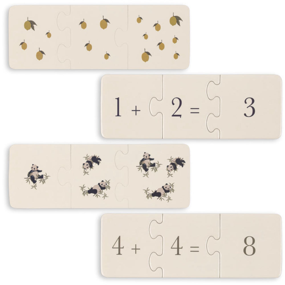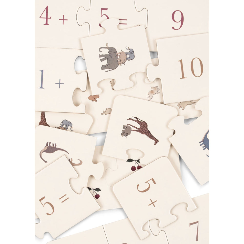 Enter the world of numbers with the Konges Sløjd Multi Cardboard Puzzle Math FSC, designed to make math engaging and fun for young minds. This beautifully crafted puzzle consists of 27 pieces that challenge children to match each number with the corresponding quantity represented in fun, eye-catching motifs. Crafted from FSC™-certified material, this game ensures that it's not only environmentally sustainable but also safe and durable for frequent play. Each piece is designed to withstand the enthusiasm of children aged 4 and above, while the small parts present make it unsuitable for those under 36 months due to the choking hazard they pose. Perfect for boosting mathematical skills, this puzzle promises to keep your child engaged through interactive play that improves both cognitive and problem-solving abilities. Compact and easy to store, the entire set comes in a charming box that makes it an ideal choice for tidy play areas and effortless portability. Regular interaction with this puzzle nurtures a love for learning and provides endless opportunities for educational play at home or on the move.