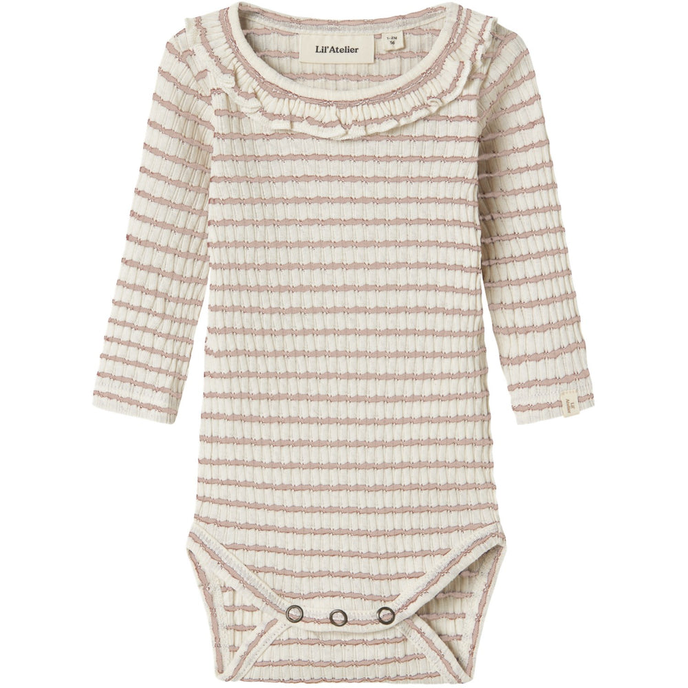 Dress your little one in the Lil'Atelier Cameo Rose Nbfosophia Ls Slim Body Bodysuit, where comfort meets style in everyday fashion. Crafted from lightweight and stretchy jersey, it feels soft inside and out, ensuring your child's ultimate comfort and freedom to move. This charming bodysuit features a round neck, long sleeves, and convenient press stud fastenings for easy dressing. Stylish frills add a trendy touch, while the delicate cameo rose color makes it a delightful addition to any wardrobe. Keep in mind to keep this garment away from fire and enjoy the blend of functionality and cuteness in your child's look.