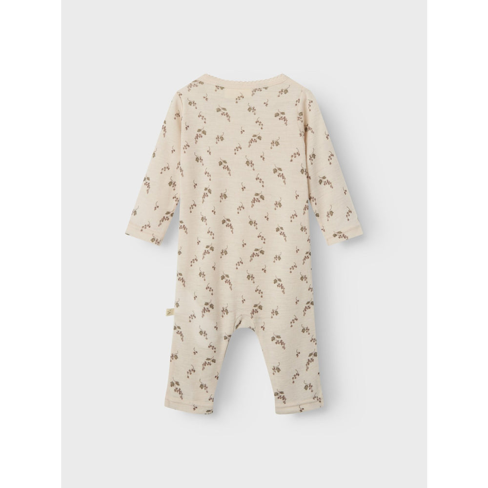 Dress your little one in the comfort and charm of the Lil'Atelier Morganite Berry Nbfnoel Nia Wool Ls Slim Suit. Crafted from natural wool, this all-in-one suit combines warmth and breathability, perfect for keeping cozy in the cooler months and comfortable on warmer days.