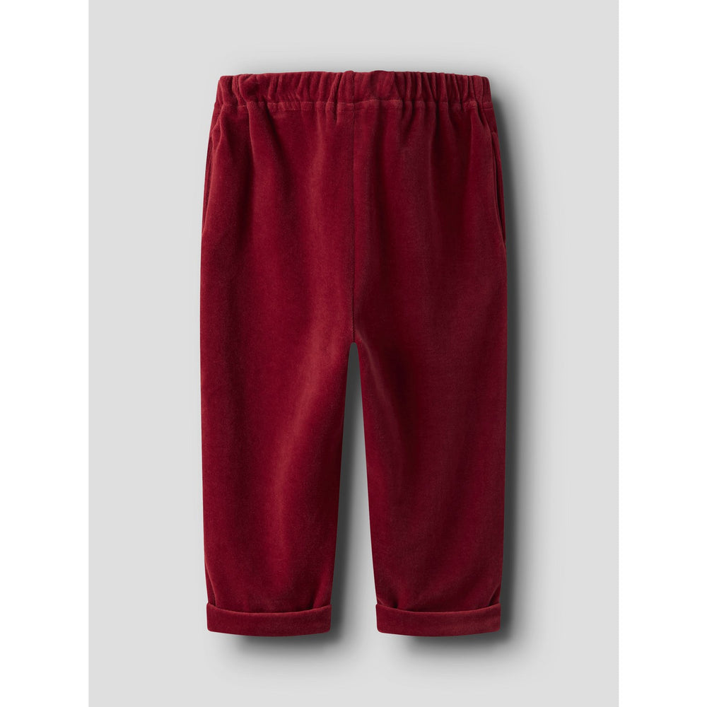 Discover the charm and comfort of Lil'Atelier Red Dahlia Nmfsaga Sag Loose Pants. Designed specifically for kids, these trousers are made from velour, a luxuriously soft and shiny fabric that adjusts with every touch, ensuring a snug and appealing finish. They feature an adjustable waist for a custom fit, making them perfect for growing children. The loose fit offers unrestricted movement, ideal for playtime or relaxation. Suitable for everyday wear, these pants combine style, comfort, and practicality, making them a staple in any child's wardrobe.