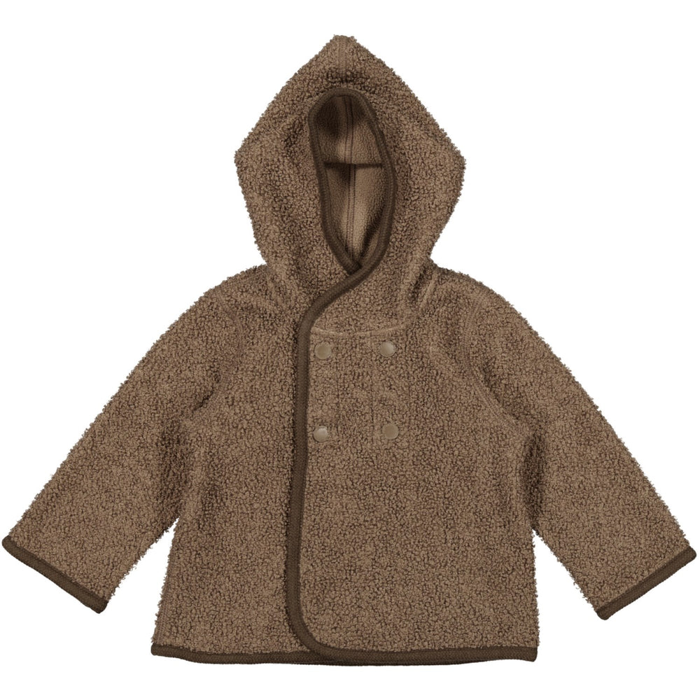 Introducing the MarMar Bonded Teddy Terre Jojoa Jacket, perfect for keeping your little one cozy! Crafted with a plush teddy exterior and a soft fleece lining, this jacket features a whimsical elf hood and secure front closures with both internal and external buttons. The stylish design flatters in any setting, while the thoughtful components ensure comfort and easy care. Ideal for chilly days, it promises warmth and long-lasting wear for children of all ages. Materials: 100% Polyester (Recycled) Washing instructions: Wash - Machine wash 30°C gentle, Bleach - Do not bleach , Drying - Do not tumble dry, Ironing - Do not Iron, Dry Clean - Do not dry clean Certifications: OEKOTEX standard 100, GRS, BSCI Teddy fleece 100% Recycled polyester Soft, warm and comfortable Inner fleece lining Great for outerlayer and as midlayer