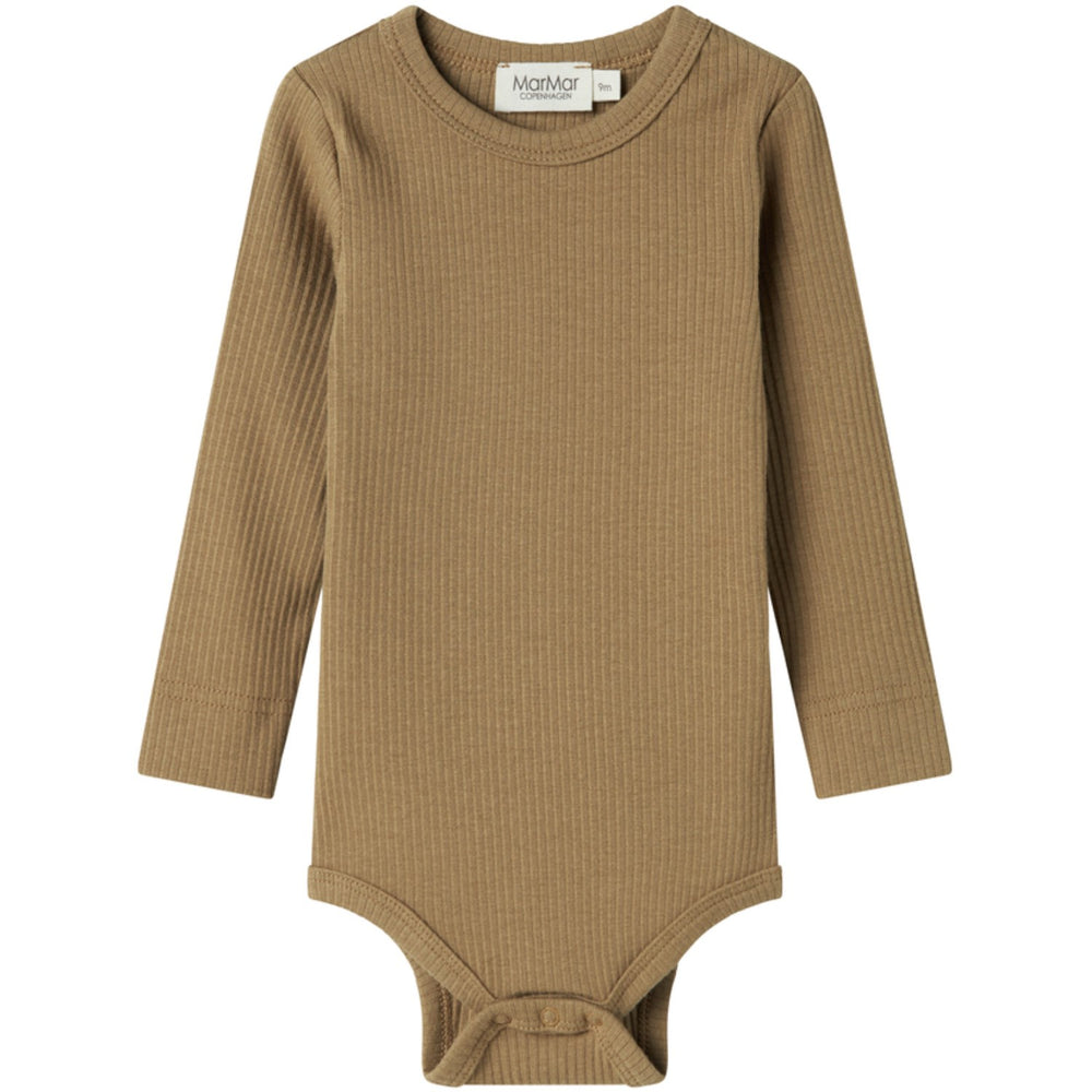 Discover the perfect blend of style and practicality for your little one with the MarMar Modal Dark Bronze Plain Body LS. Crafted from soft modal fabric, this long-sleeved bodysuit in an elegant dark bronze hue ensures comfort and easy movement. Featuring convenient snap buttons at the crotch, dressing and diaper changes become effortlessly simple. Ideal for layering or wearing alone, this versatile piece is a must-have in every infant's wardrobe. Materials: 47% Modal 48% Cotton (Organic) 5% Elastane Washing instructions: Wash - Machine wash 40°C , Bleach - Do not bleach , Drying - Do not tumble dry, Ironing - medium, Dry Clean - Dry clean possible Certifications: OEKOTEX standard 100, GOTS , Lenzing, SMETA Rib knitted with elastane Soft, stretchy and comfortable to wear Quality that keeps shape and color Wear it with everything Oeko-tex® - Tested for harmful chemicals Modal styles is a favorit since 2008 and is lanched in new colors each season
