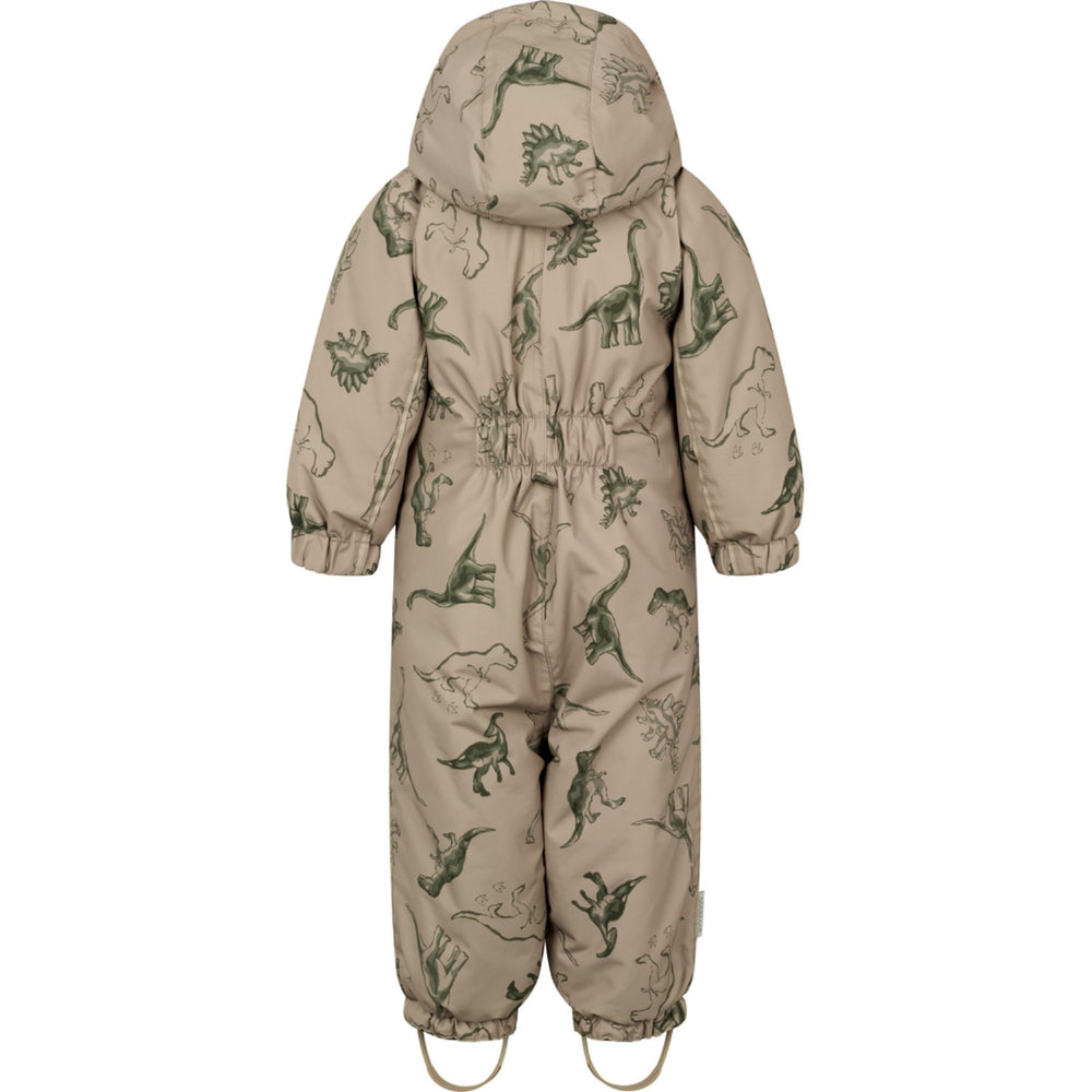 Dress your little adventurer in MarMar Tech's Oriel Suit, a dinosaur-print snowsuit that blends functionality with whimsy. Crafted from a soft, lightweight material, this charming ensemble offers warmth and comfort throughout the winter season. It features dual long zippers for effortless dressing, a removable hood, and adjustable silicone foot straps for a snug fit under boots, keeping snow at bay. Perfect for playful snowy days, this suit ensures your child stays cozy and stylish. Materials: 100% Polyester (Recycled) Washing instructions: Wash - Machine wash 30°C gentle, Bleach - Do not bleach , Drying - Do not tumble dry, Ironing - Do not Iron, Dry Clean - Do not dry clean Certifications: OEKOTEX standard 100, GRS, Bionic Finish, Thermolite, BSCI Soft and warm winther outerwear Waterproof (water column pressure of 10,000mm) Breathable with 10,000gr / m2 / 24h Windproof Waterproof taped seams Durable material Thermolite insulation is super light and fluffy, that ensures warm and temperate body temperature Reflective details in matching colors so the child is visible in traffic Ribbed edges in neck opening which makes it nice and comfortable to wear Velcro closure at the chest underneath the zipper Fleece on the inside at the chin, neck and sleeves which makes it soft to wear Elastic at the back for a better fit Removable and adjustable rubber bootstraps under the feet Removeble hood Matching details 2 long YKK certified zippers Namelabel on the inside
