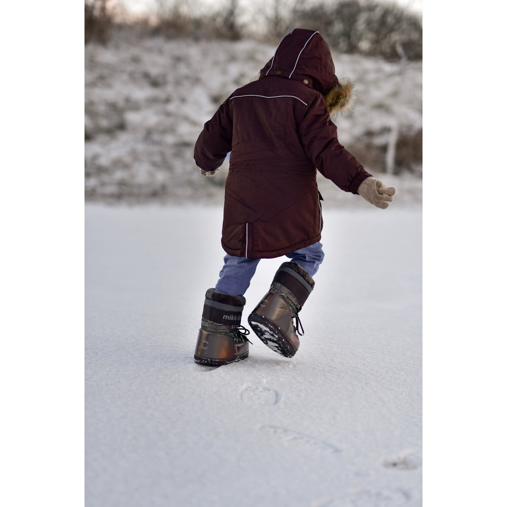 Introducing the Mikk-Line French Roast Twill Nylon Girl Parka, a winter wardrobe essential designed to keep your little one cozy and stylish during cold, wet seasons. Crafted from durable nylon with a BIONIC-FINISH® ECO fluorine-free coating, this parka boasts excellent windproof and waterproof qualities. It features a plush, thick polyester padding and a soft teddy lining in the upper body, collar, and hood, complemented by a smooth taffeta lining in the lower body, sleeves, and pockets for easy movement and comfort.