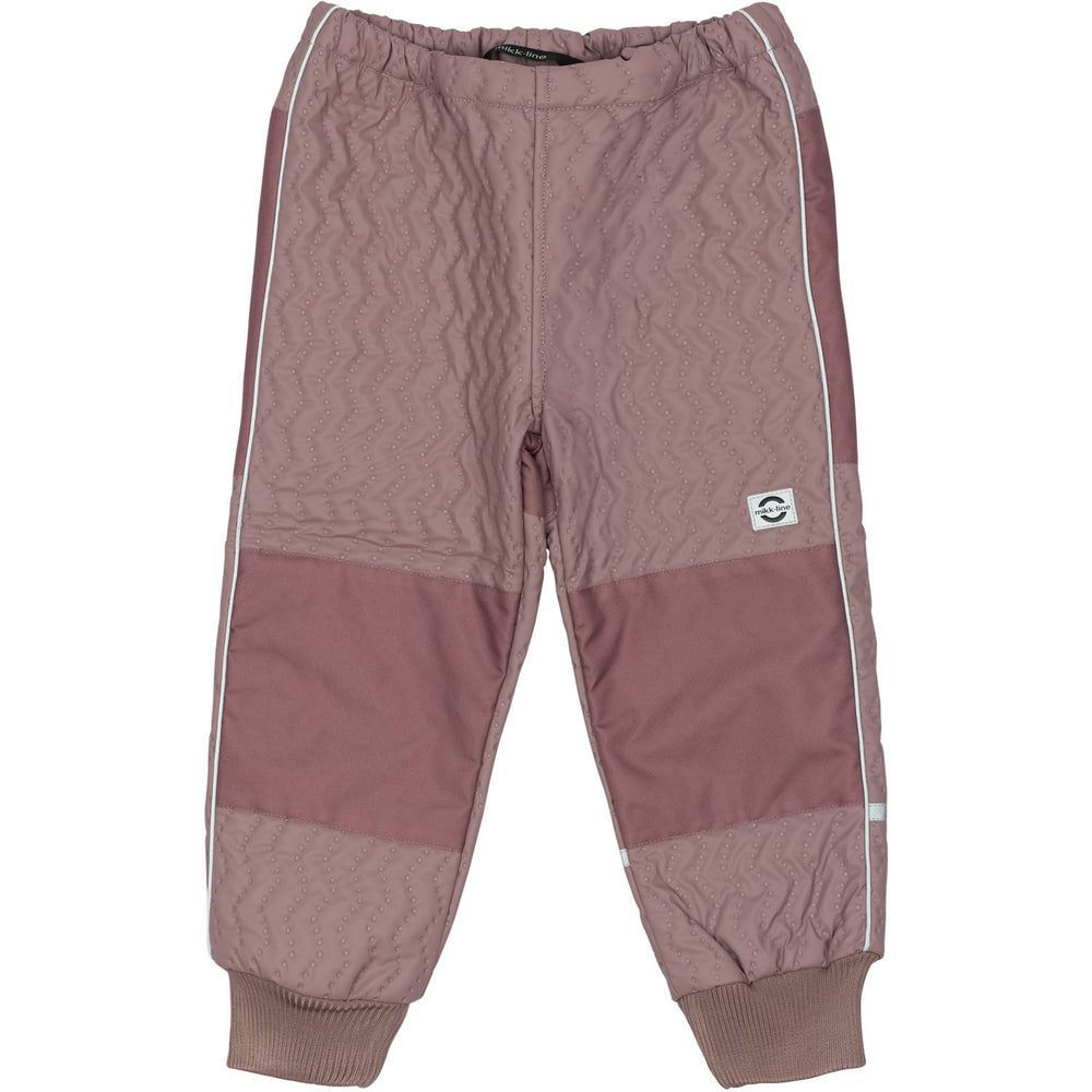 Introducing the Mikk-Line Twilight Mauve Duvet Set with Fleece, expertly crafted for children's outdoor adventures in cold and wet conditions. Boasting a high-performance thermowear set made from 100% polyester and finished with an environmentally friendly BIONIC-FINISH® ECO, this product promises superior waterproof capabilities while being free from harmful PFAS/fluorides. Both the jacket and pants feature a robust, wear-resistant material, designed to withstand varying environmental demands.