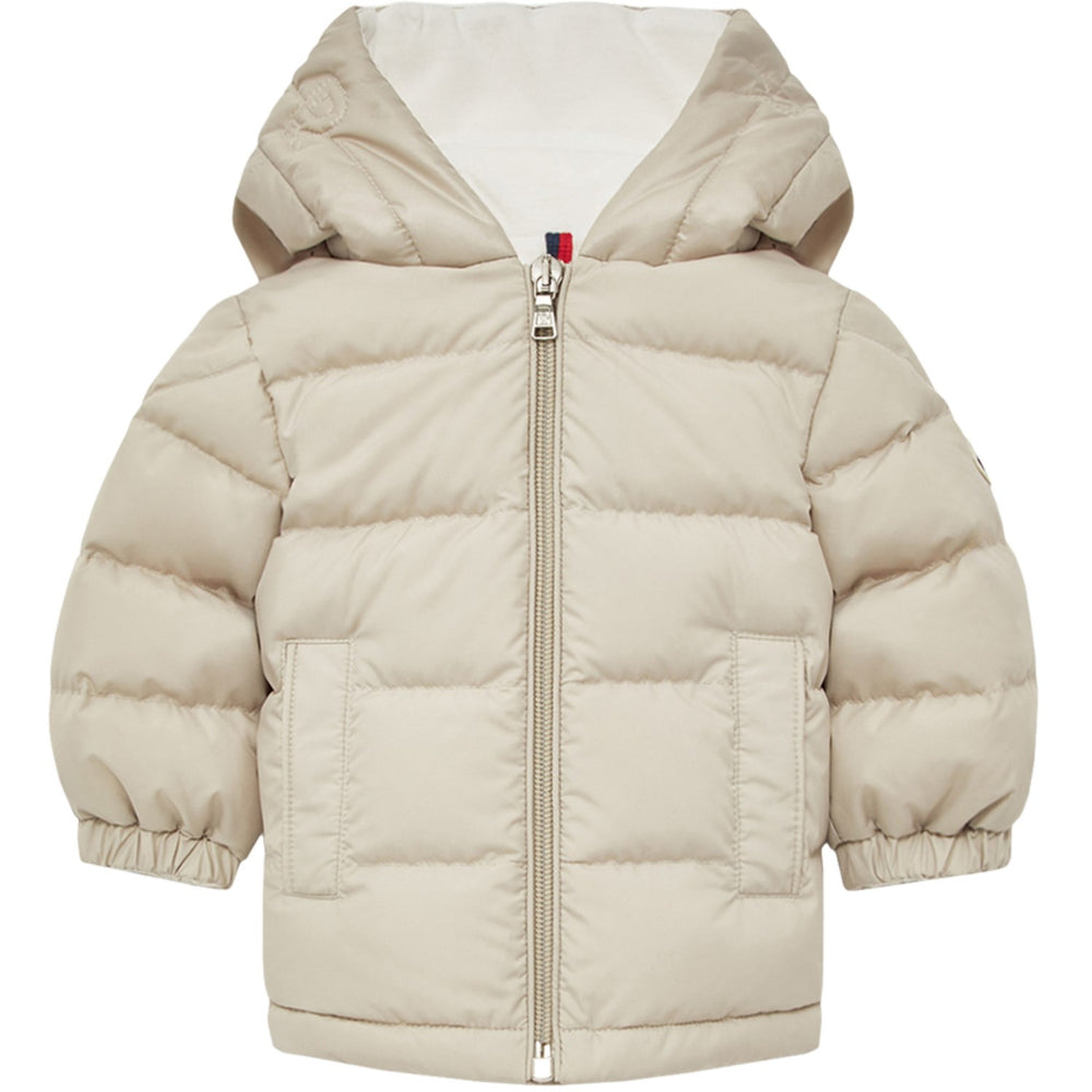 Zip up your little one in the Najan down jacket for cozy adventures! Its light beige, recycled polyester shell brings eco-friendly warmth, while the soft cotton jersey lining ensures total comfort. The playful touch? An embroidered logo that peeks out from the hood, adding a dash of chic style to any of your kiddo's outings. Perfect for chilly days and cool evenings, this jacket is a must-have in any young trendsetter's wardrobe!