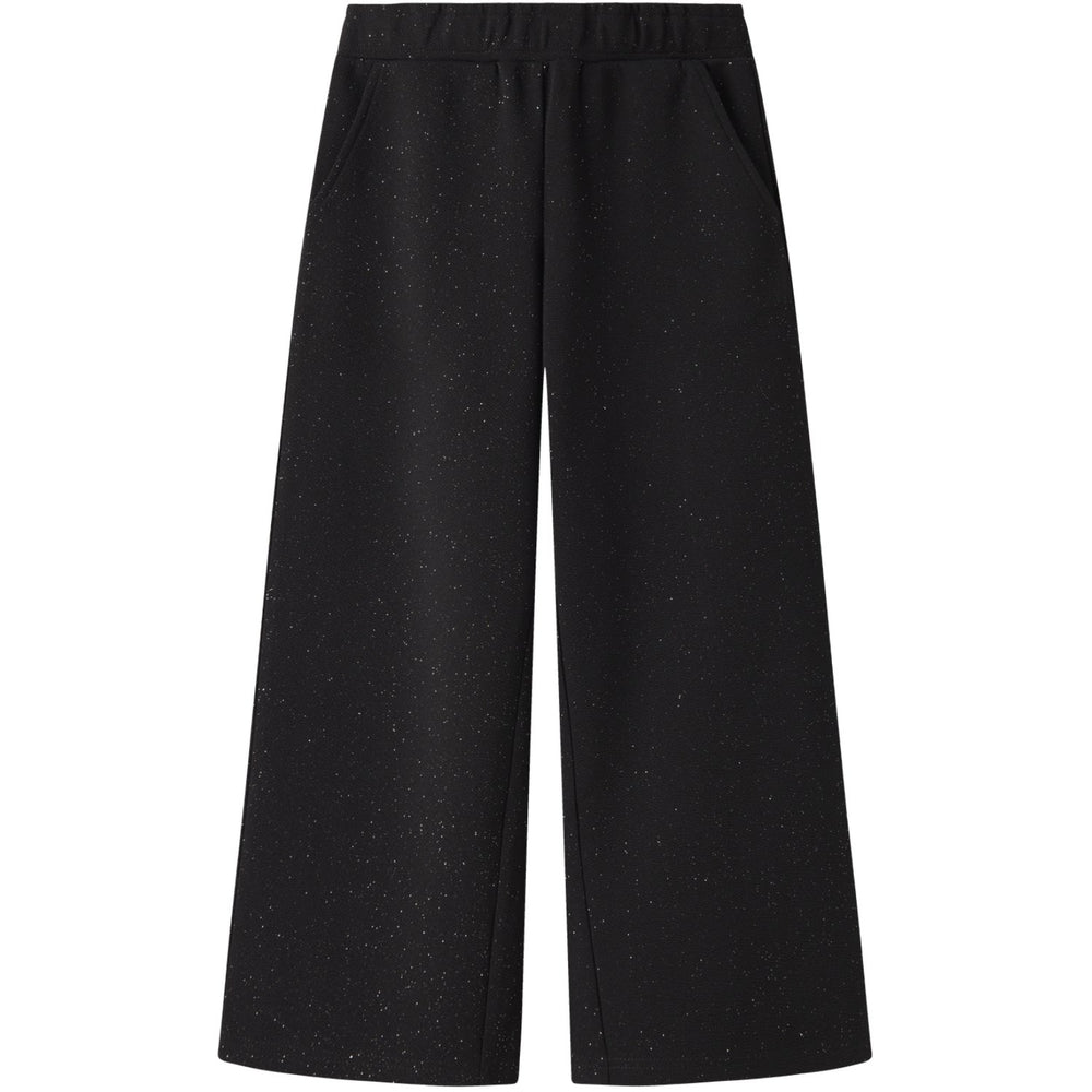 Ensure your child steps out in style and comfort with the Name It Black Nkfroka Wide Pants. Crafted from heavy jersey for exceptional drape and a polished appearance, these trousers feature a charming all-over print and glitter details for a touch of sparkle. The wide-leg fit and adjustable waistband promise perfect comfort and fit, while side pockets add practicality. Ideal for both playful days and relaxed occasions, these pants are easy to care for and maintain, making them a superb addition to any child's wardrobe.