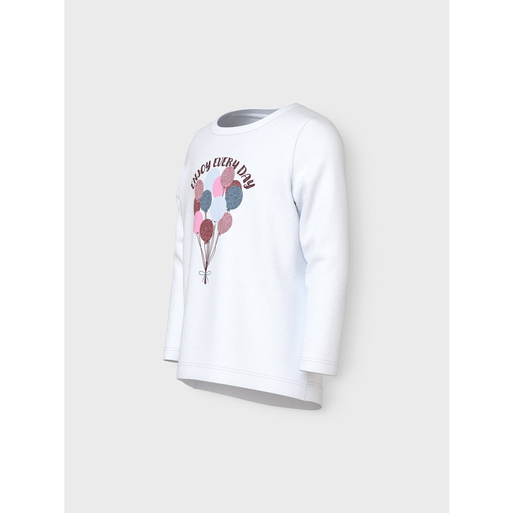 Add a touch of sparkle to your little one's everyday style with the Name It Bright White Balloons Nmfvix Ls Top. Crafted from soft, lightweight, and stretchy jersey fabric, this top ensures comfort and freedom of movement. Featuring a round neck and long sleeves adorned with a unique glitter and rubber print, it combines a cool look with a soft feel. Its standard fit is perfect for growing kids, and the delightful balloon design promises to brighten their outfit for both daily adventures and special occasions. The versatile and playful style of this top makes it a must-have addition to any child’s clothing collection.