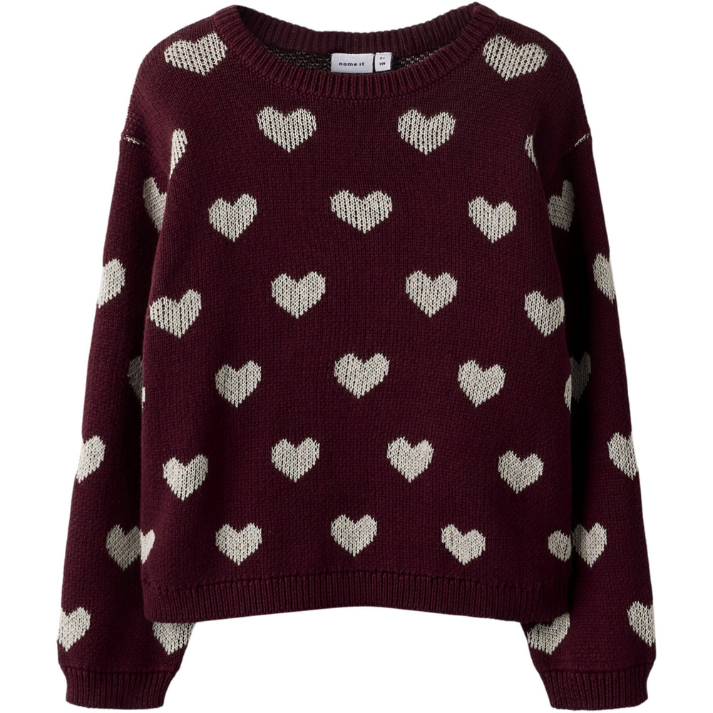 Name It Burgundy Peyote Heart Nmfoana Ls Knit