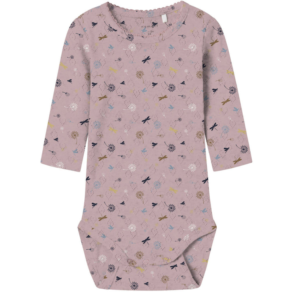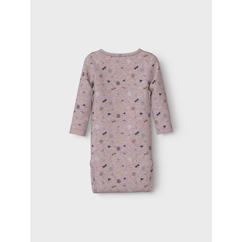 Introducing the Name It Burnished Lilac Nbfkoral Ls Body, an exquisite addition to your little one's clothing collection. Crafted with cozy rib knit material that offers excellent elasticity, this bodysuit ensures a snug and comfortable fit with a charming striped pattern for a classic appeal. It features long sleeves and a round neck for easy wear, while the secure press stud fastening makes dressing hassle-free. The delightful, full-surface print adds a touch of whimsy to the outfit. Ideal for year-round use, this bodysuit combines style, comfort, and practicality, making it a must-have for your child's daily adventures. Always remember to keep the product away from fire for safety.