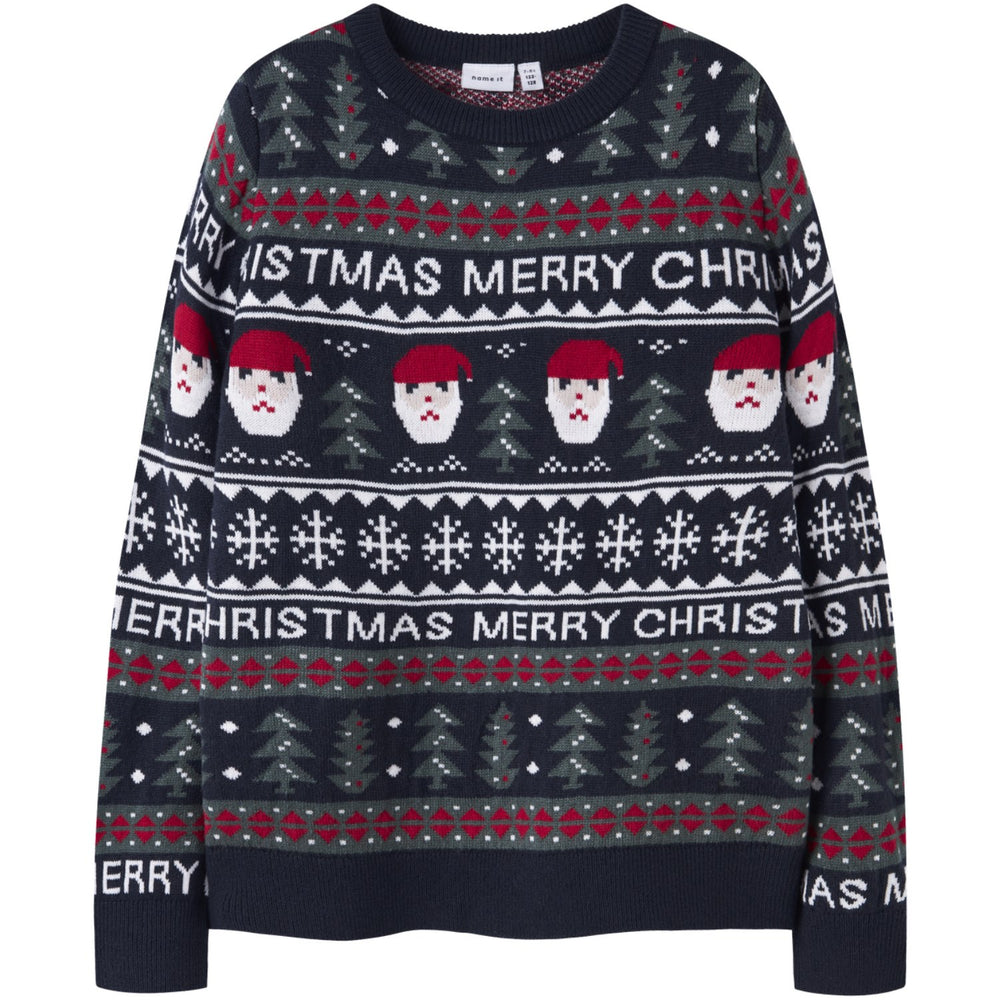 Dress your little one in the charming Name It Dark Sapphire Nknrastokka Ls Knit this holiday season. This knitted pullover features a delightful jacquard pattern that adds a timeless appeal with its detailed, structured texture. Designed for both style and comfort, it offers a regular fit with long sleeves and ribbed cuffs, ideal for joyful winter celebrations. The round neck design ensures easy wearability, making it perfect for festive occasions. The soft, cozy material and festive design make it a great choice for spreading holiday cheer.
