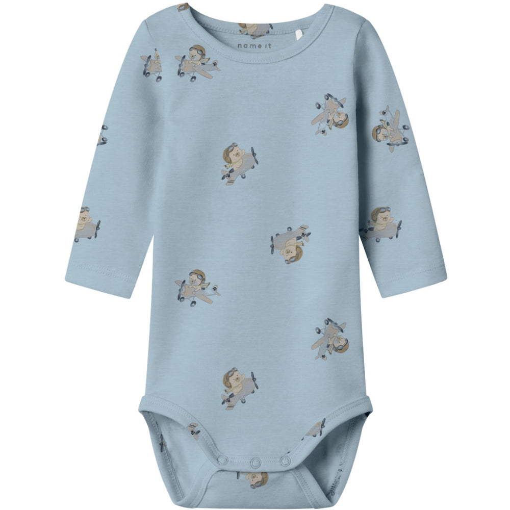 Introducing the charming Name It Dusty Blue Nbmkinok Ls Body, the perfect addition to your baby's wardrobe. Crafted from supple jersey material, this bodysuit promises a gentle touch with a stretchy, lightweight feel that allows unrestricted movement. It features an enchanting all-over print, long sleeves for extra coziness, and a practical round neck design, ensuring a snug and stylish fit. The press stud fastenings enable easy dressing, making it as functional as it is fashionable. Available in dusty blue, this bodysuit not only follows the latest trends but also upholds the high standards of comfort and practicality that NAME IT BABY is known for. Remember to keep this adorable piece away from fire and enjoy the blend of style, comfort, and ease it brings to your little one's daily adventures.