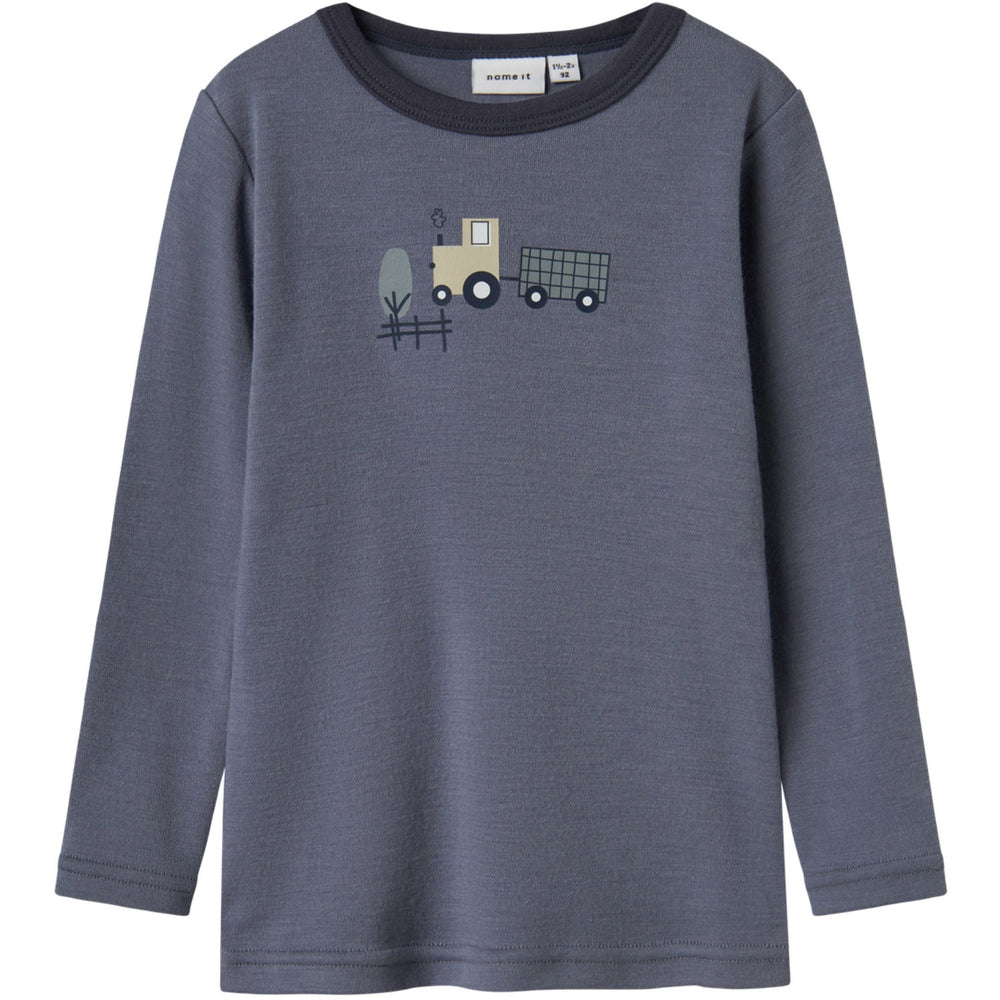 Name It Folkstone Gray Tractor Nmmwillit Wool Ls Top