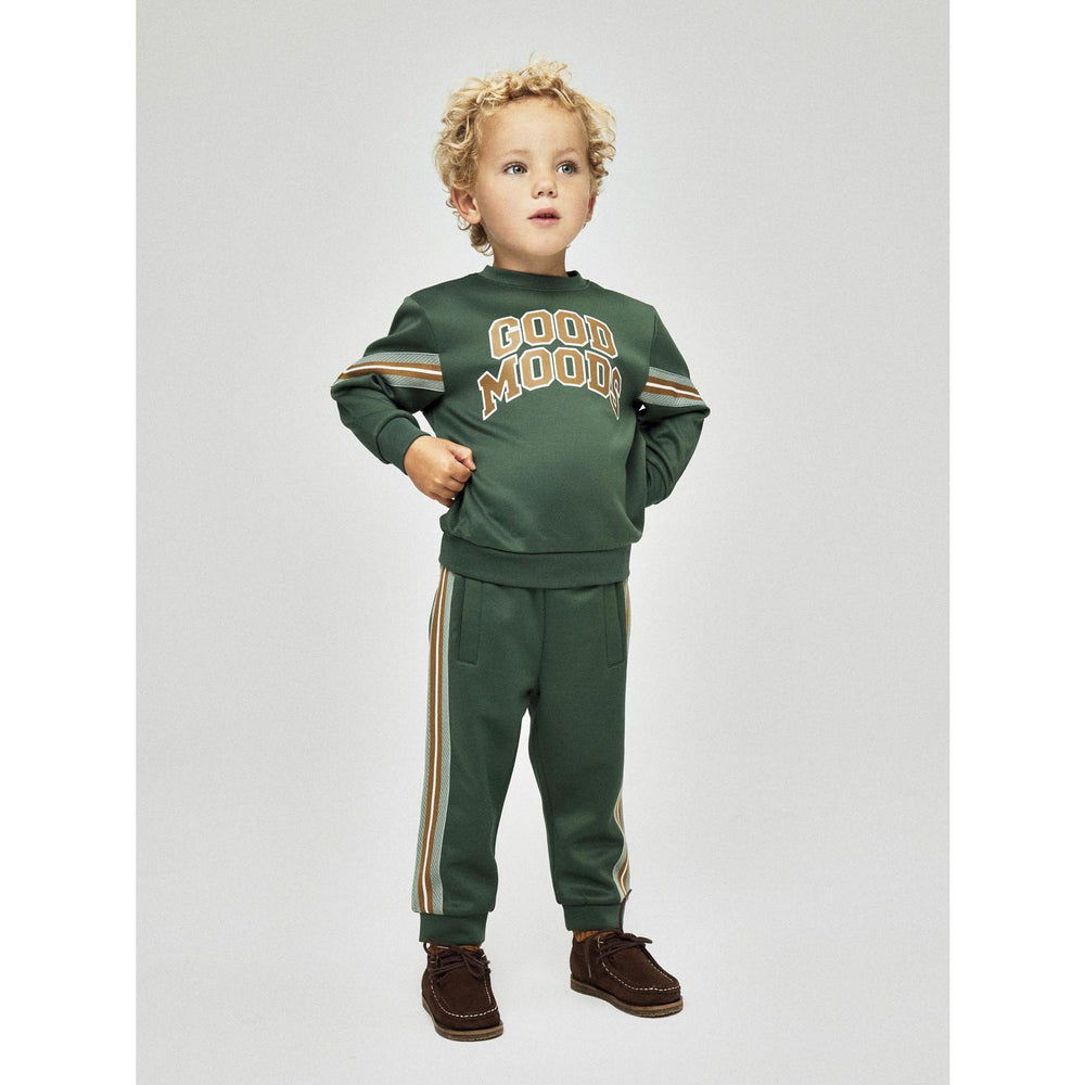 Dress your little one in the Name It Garden Topiary Nmmlancer Ls Nreg Sweat Unb for a blend of comfort and style. This regular-fit sweatshirt features unbrushed sweat fabric that is smooth on the outside with cozy loops on the inside. Boasting a classic round neck and long sleeves adorned with unique woven details, it's finished with a soft rubber print. Perfect for daily wear, this piece combines durability with a fashionable flair, making it a must-have in your child's wardrobe. Ideal for both school and play, it ensures your child stays snug and stylish all day long.