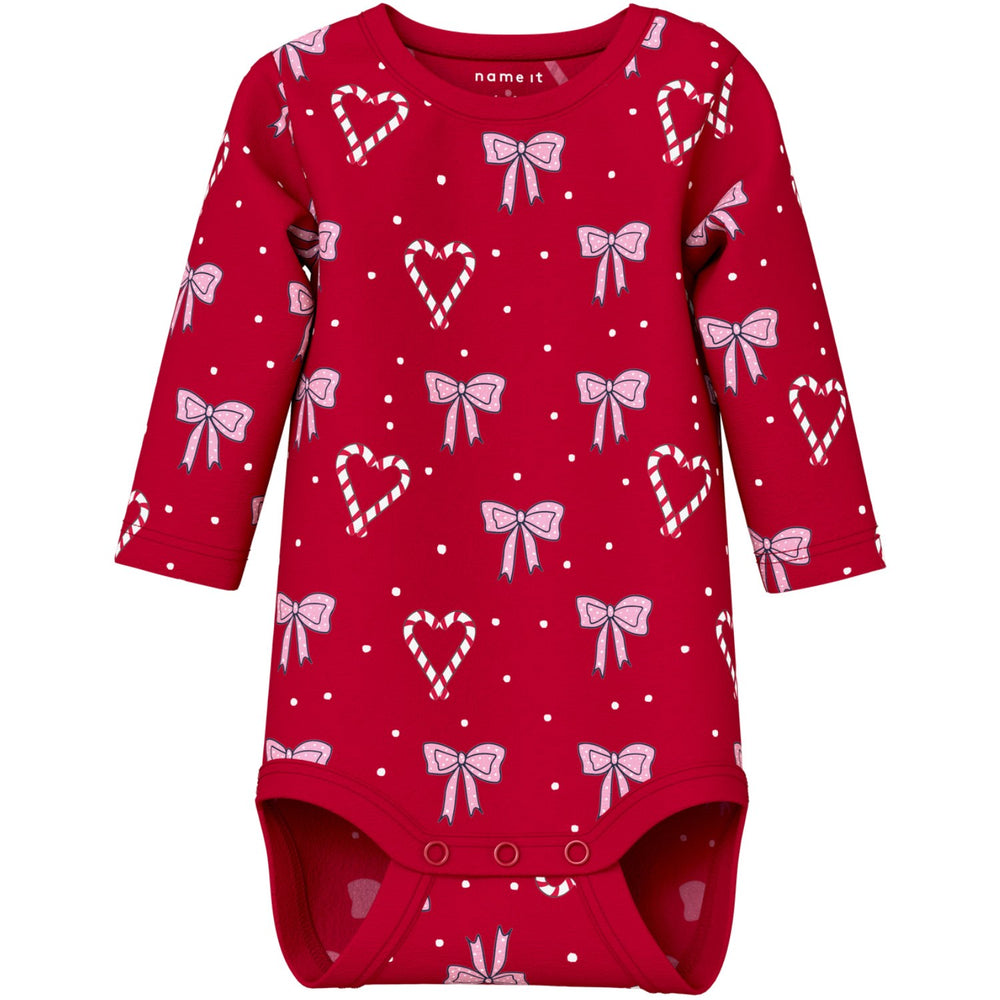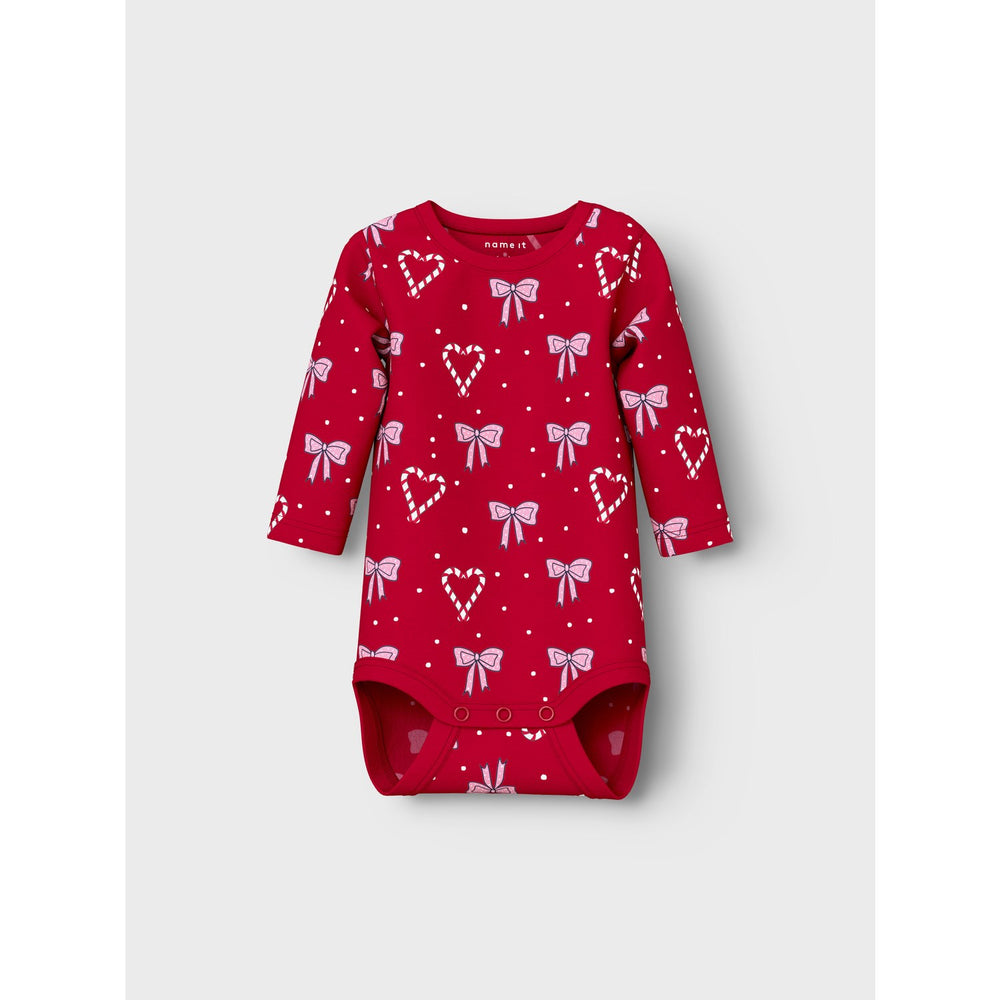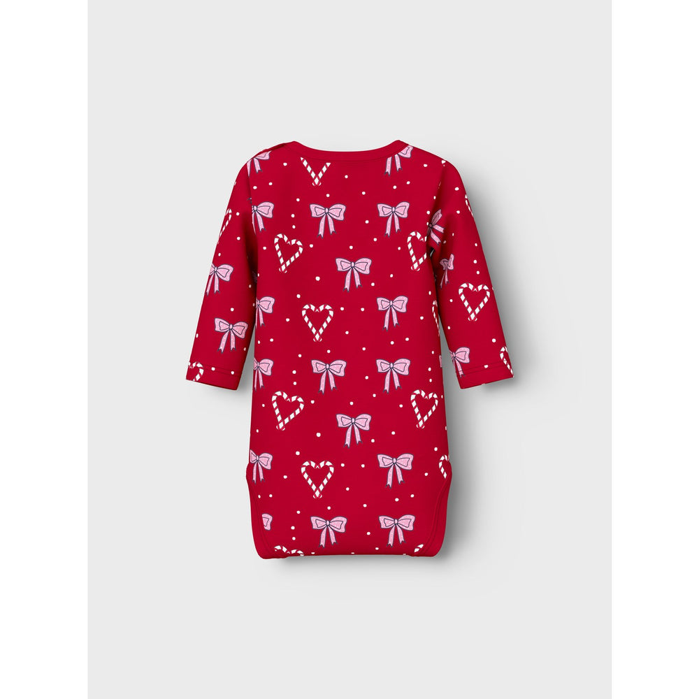 Dress your little one in the holiday spirit with the Name It Jester Red Nbfri Ls Body! This adorable bodysuit features a vibrant all-over print that captures the essence of Christmas cheer. Made from soft, stretchy jersey, it ensures comfort and freedom of movement for your child. The practical press stud fastening, coupled with long sleeves and a round neck, enhances both functionality and style. Ideal for festive occasions, this bodysuit combines joyous design with easy care and safety, keeping the festive spirit alive while prioritizing your child's comfort. An essential pick for your child's holiday wardrobe! Closure: Press Stud Materials: 95% Cotton - Organic, 5% Elastane Extra: The main material in this product contains a minimum of 50% organic cotton. Organic cotton is grown without the use of harmful chemicals. Organic cotton farming protects natural resources and biodiversity.
