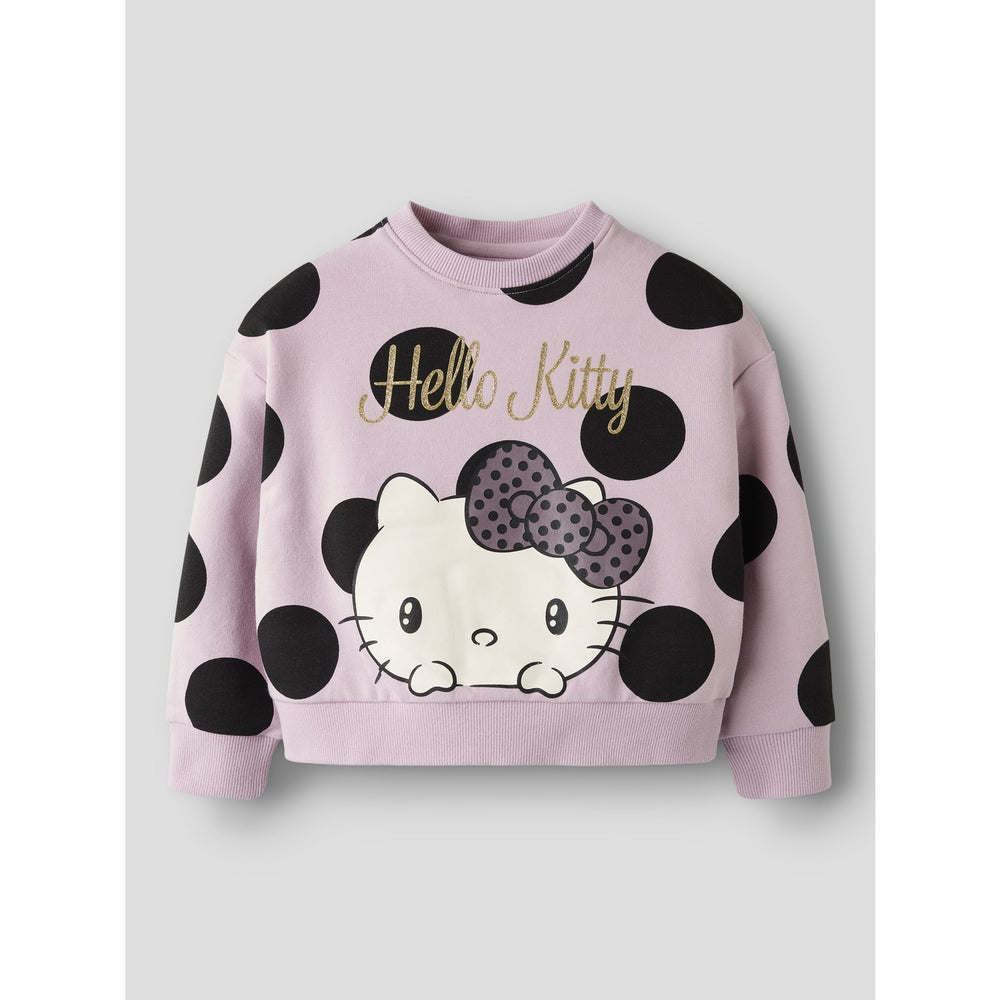Dress your little one in the delightful Name It Keepsake Lilac Nmfobsina Hellok Nreg Sweat Bru Sky sweatshirt, an embodiment of casual chic and ultimate comfort. This charming sweatshirt features a soft, brushed sweat fabric with a cozy inside, ideal for maintaining comfort throughout the day. Adorned with a playful Hello Kitty print that spans across the entirety of the garment and rubberized for a soft feel, it adds a sprinkle of fun to any outfit.