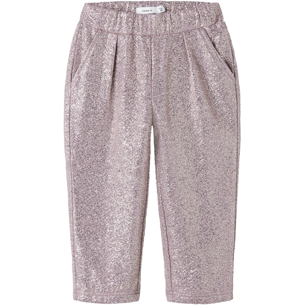 Bring flair to your child's wardrobe with the Name It Keepsake Lilac Nmfrditsa Pants. Crafted for comfort, these trousers boast a soft feel and regular fit, complemented by chic side pockets and enchanting glitter details for a standout style. Ideal for everyday wear and easy care, they encapsulate both functionality and fashion. Fit: Regular Materials: 95% Polyester, 5% Elastane
