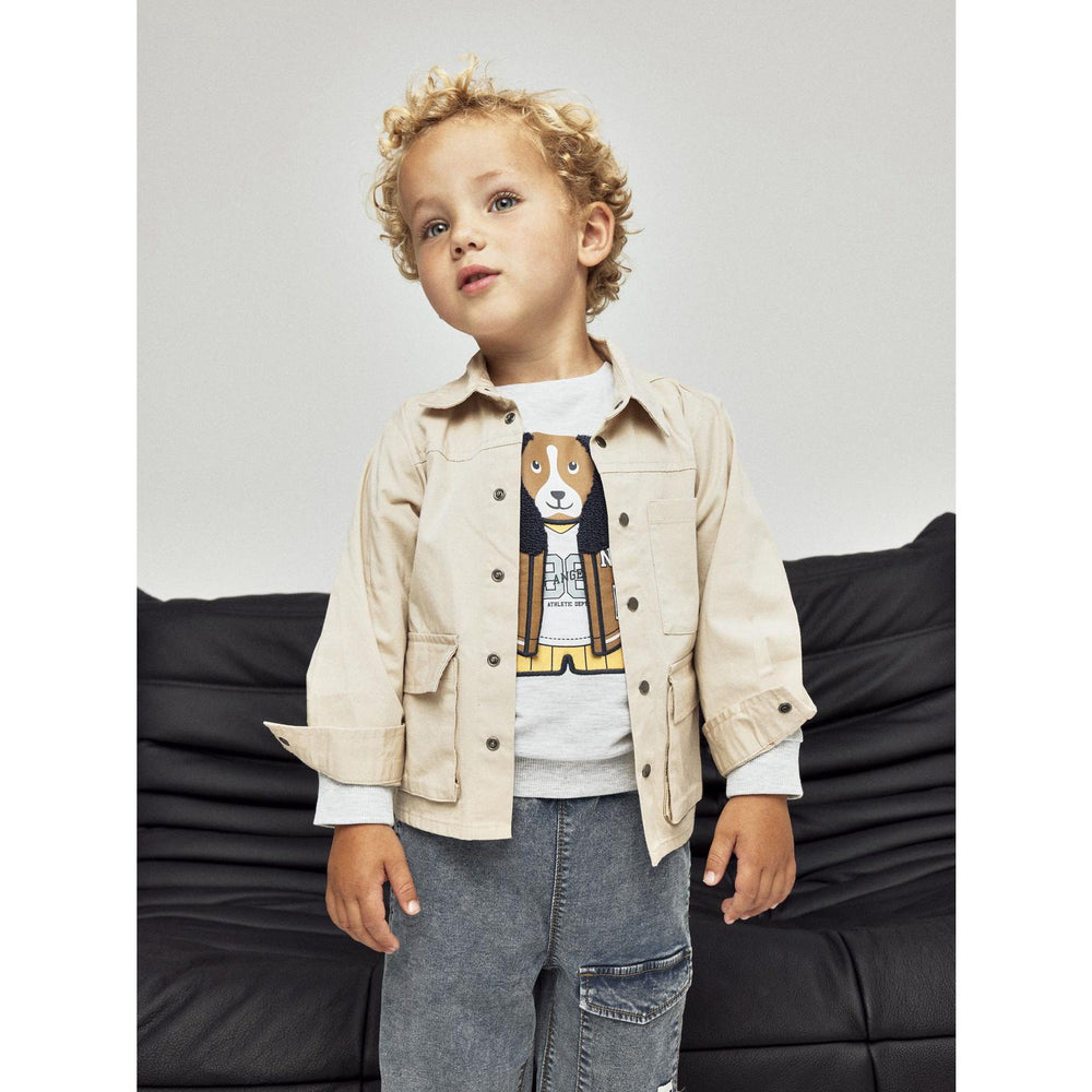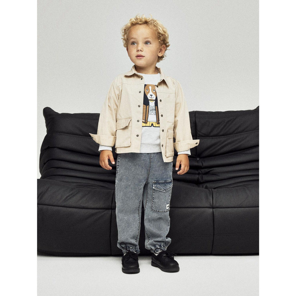 Dress your little one in the Name It Light Grey Melange Nmmkamden Ls Sweat Unb, designed for both comfort and style. This sweatshirt features unbrushed sweat fabric with a smooth exterior and soft loops inside, ensuring a snug feel. It boasts a classic round neck, long sleeves with cozy ribbed cuffs, and distinctive 3D embroidery with terry and woven details. The rubber print adds a touch of softness. Ideal for everyday wear, this regular fit sweatshirt combines effortless maintenance with durability, making it a must-have in your child's wardrobe. Perfect for playing or lounging, it keeps your child trendy and comfortable throughout the day.